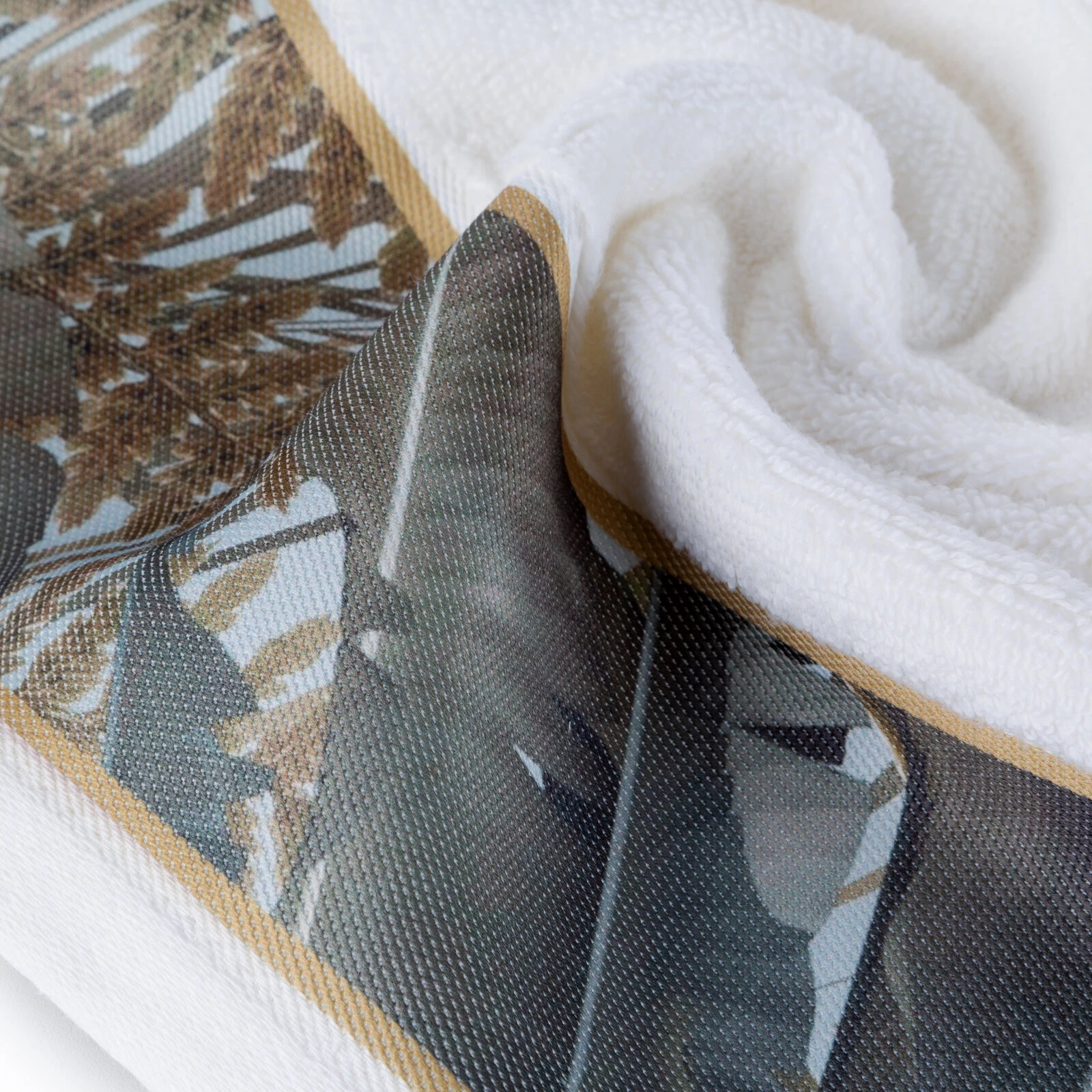 Ręcznik z ozdobną bordiurą szerokość: 70 cm, długość: 140 cm, kolor: biały, Gramatura: 500 GSM, Skład: 100% bawełna; część ozdobna: 100% poliester
