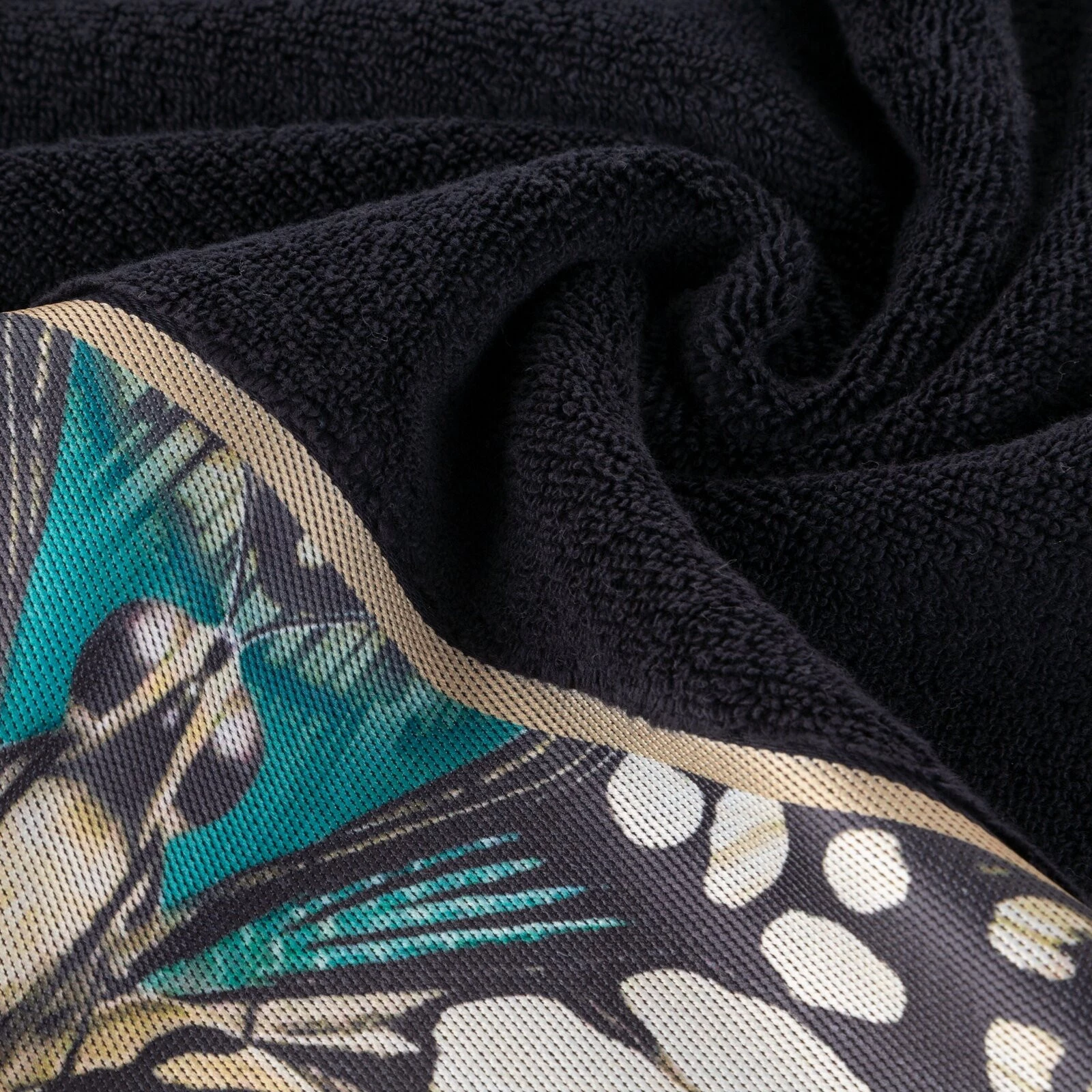 Ręcznik z ozdobną bordiurą szerokość: 70 cm, długość: 140 cm, kolor: czarny, Gramatura: 500 GSM, Skład: 100% bawełna; część ozdobna: 100% poliester