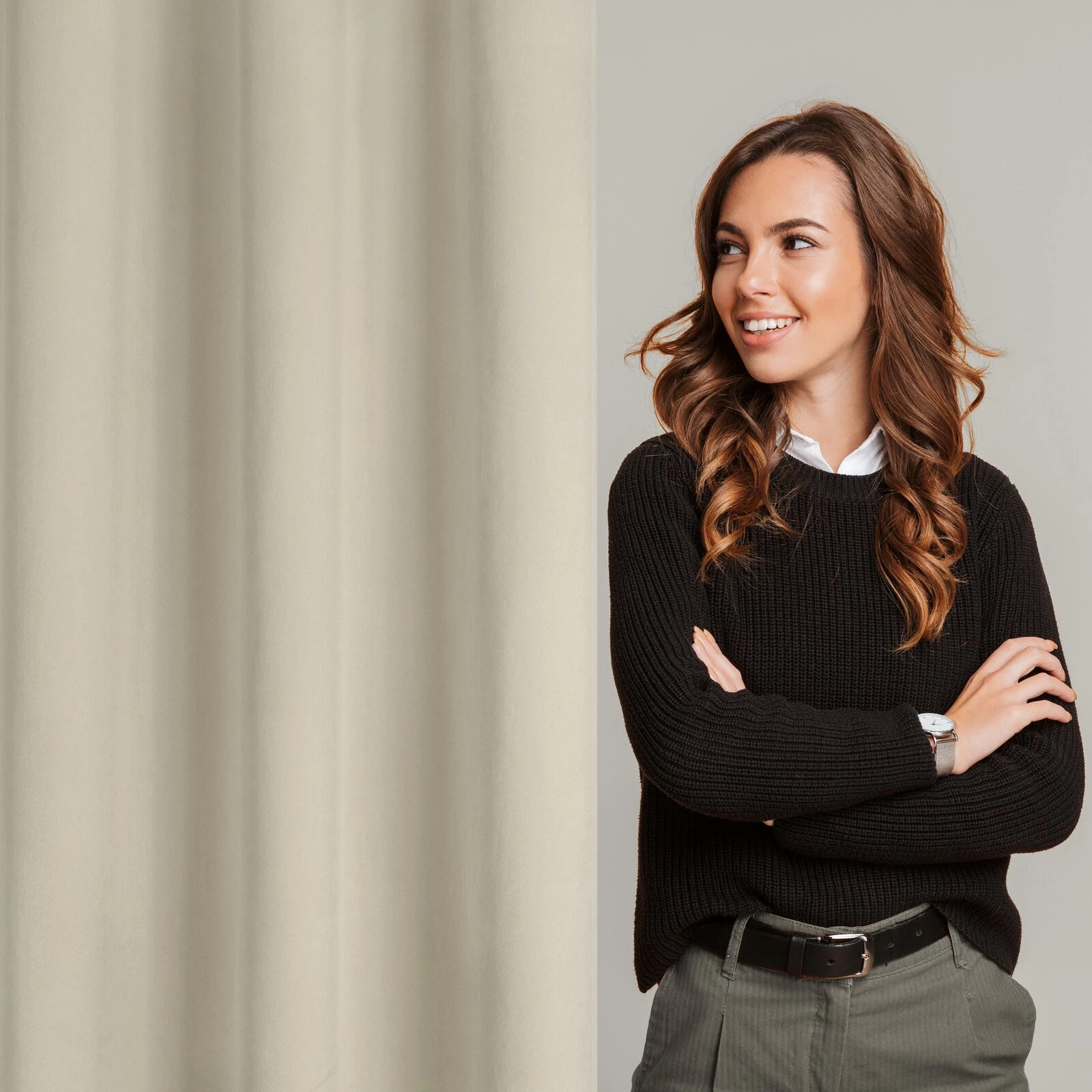 Zasłona welwetowa 100% zaciemniająca szerokość: 140 cm, długość: 250 cm, kolor: beżowy, Gramatura: 200 GSM, Skład: przód: 100% poliester; tył: 98% akryl, 2% poliester