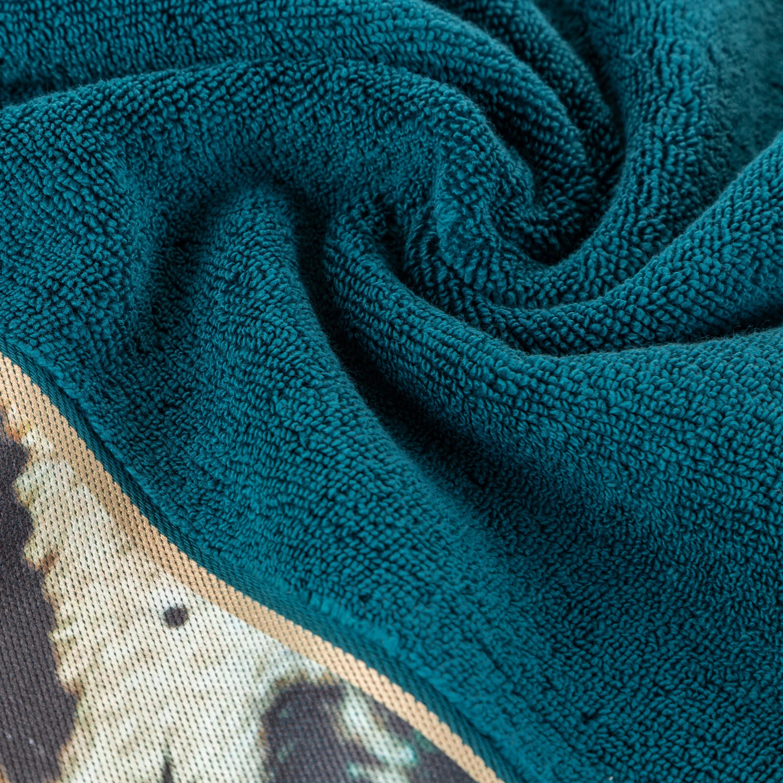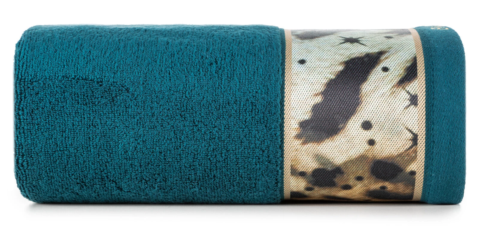 Ręcznik z ozdobną bordiurą szerokość: 50 cm, długość: 90 cm, kolor: ciemnoturkusowy, Gramatura: 500 GSM, Skład: 100% bawełna; część ozdobna: 100% poliester
