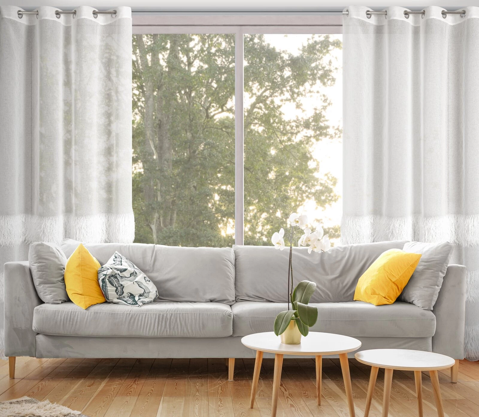 - Firana gotowa z aplikacją szerokość: 140 cm, długość: 250 cm, kolor: kremowy, Gramatura: 90 GSM, Skład: 100% poliester