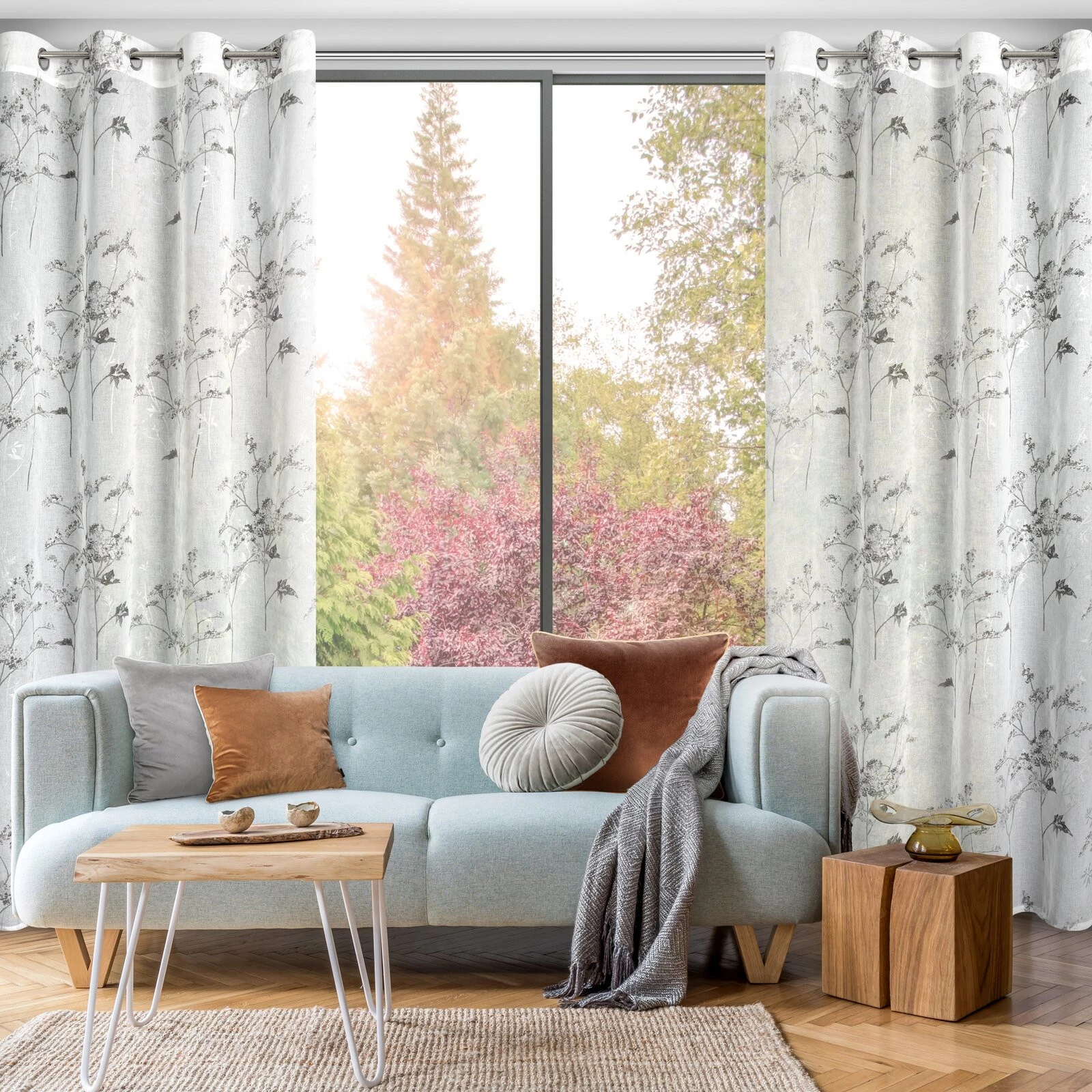 Zasłona gotowa z błyszczącym nadrukiem szerokość: 140 cm, długość: 250 cm, kolor: biały, Gramatura: 90 GSM, Skład: 100% poliester
