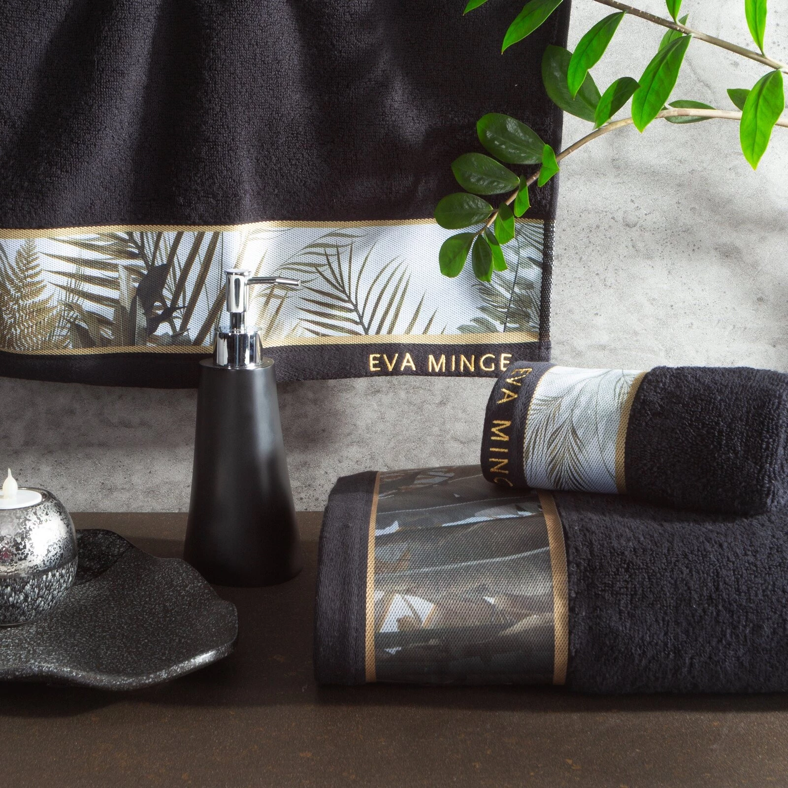 Komplet ręczników szerokość: 46 cm, długość: 36 cm, kolor: czarny, Gramatura: 500 GSM, Skład: 100% bawełna; część ozdobna: 100% poliester