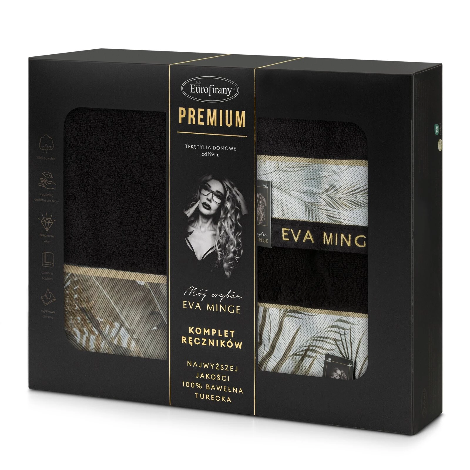 Komplet Ręczników Eva17 46 x 36 x 7 cm, Czarny