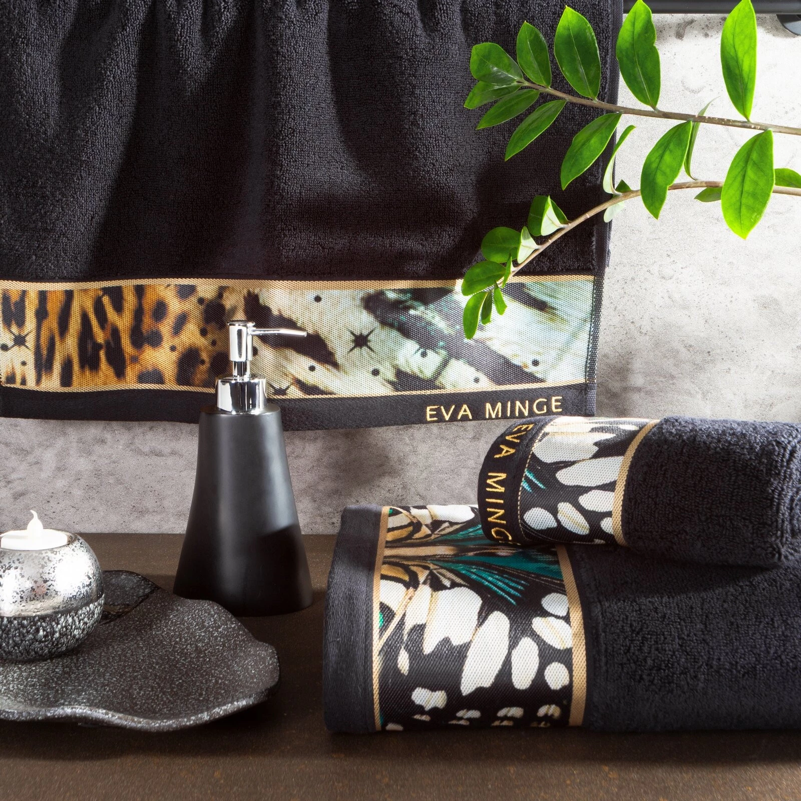 Komplet ręczników szerokość: 46 cm, długość: 36 cm, kolor: czarny, Gramatura: 500 GSM, Skład: 100% bawełna; część ozdobna: 100% poliester