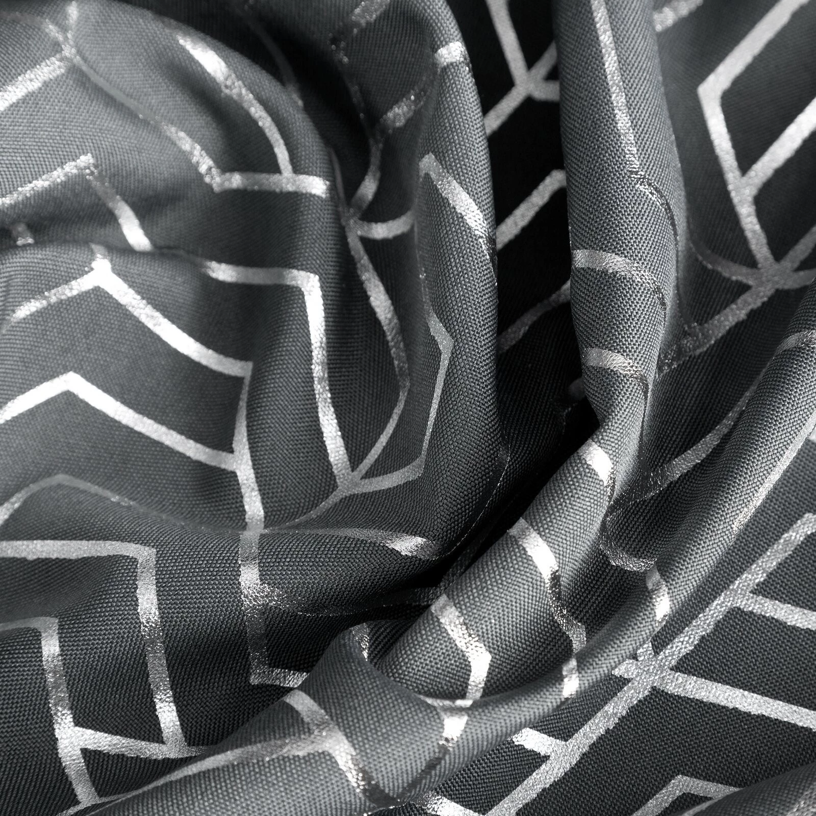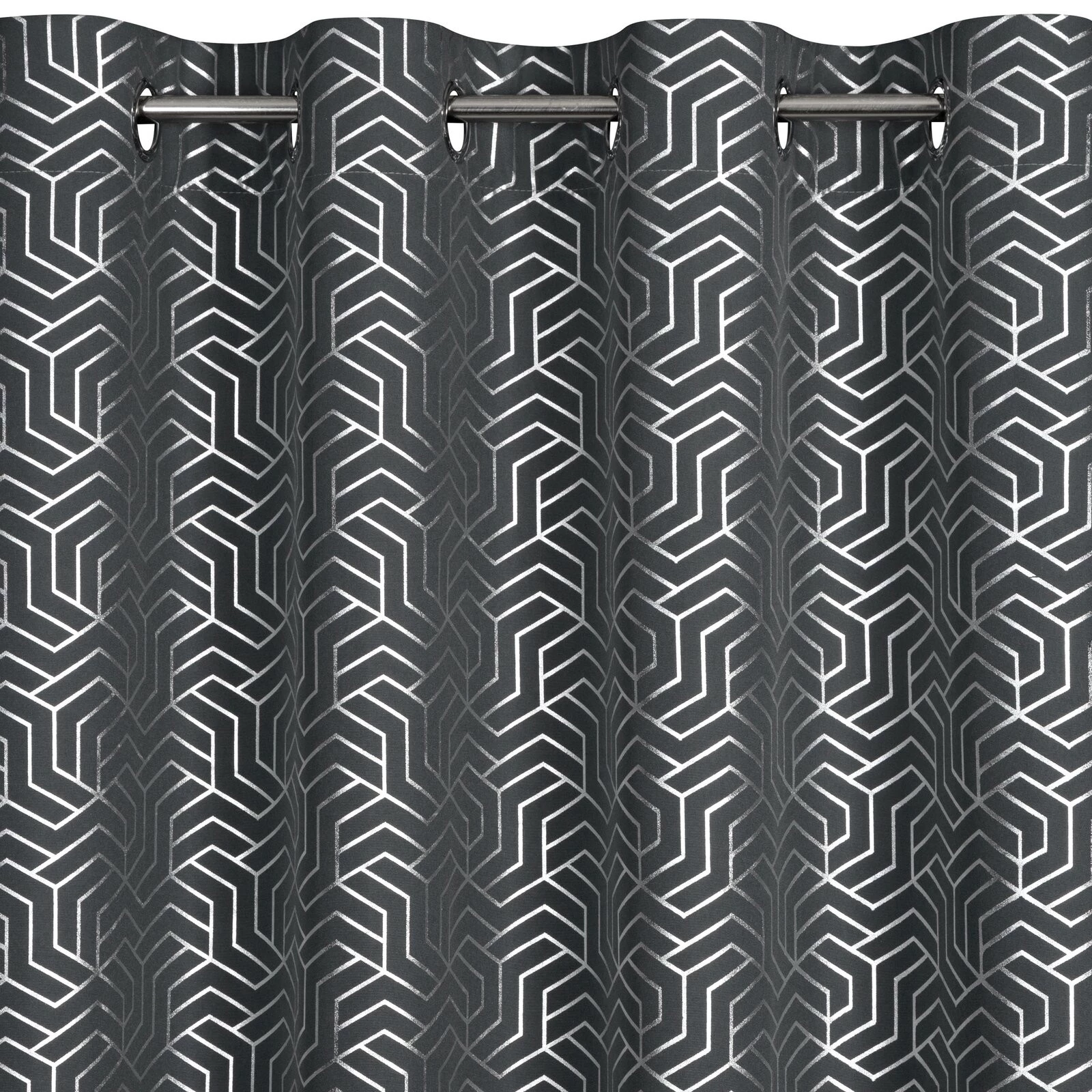 Zasłona gotowa z nadrukiem błyszczącym szerokość: 140 cm, długość: 250 cm, kolor: stalowy, Gramatura: 140 GSM, Skład: 100% poliester