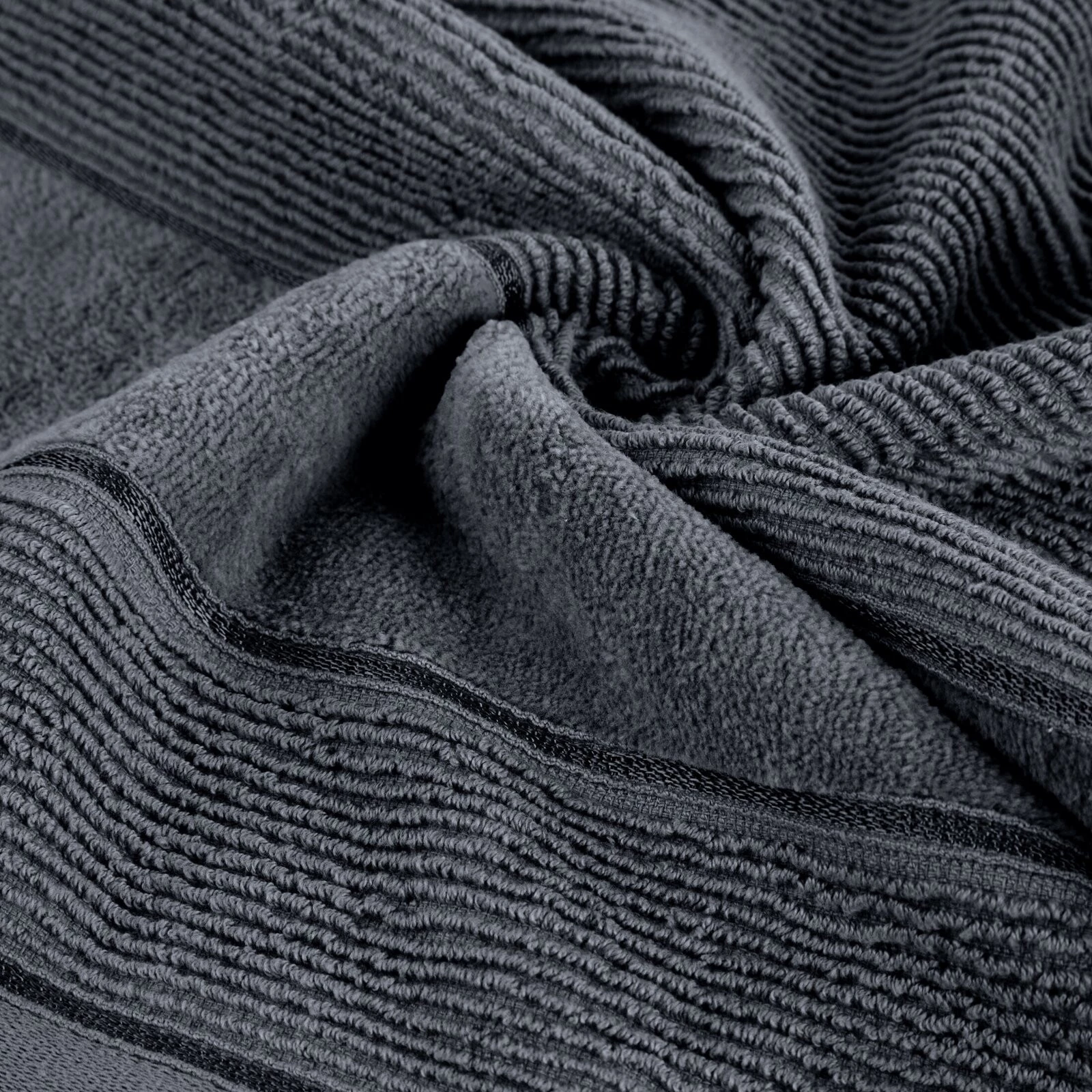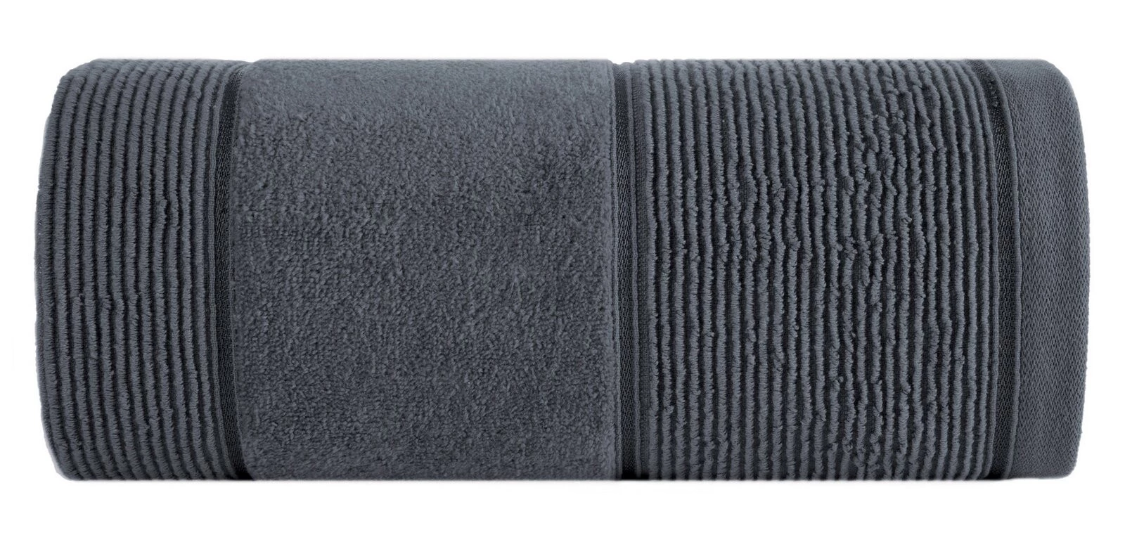 Ręcznik bawełniany o strukturze w prążki z welurową bordiurą szerokość: 50 cm, długość: 90 cm, kolor: stalowy, Gramatura: 500 GSM, Skład: 100% bawełna