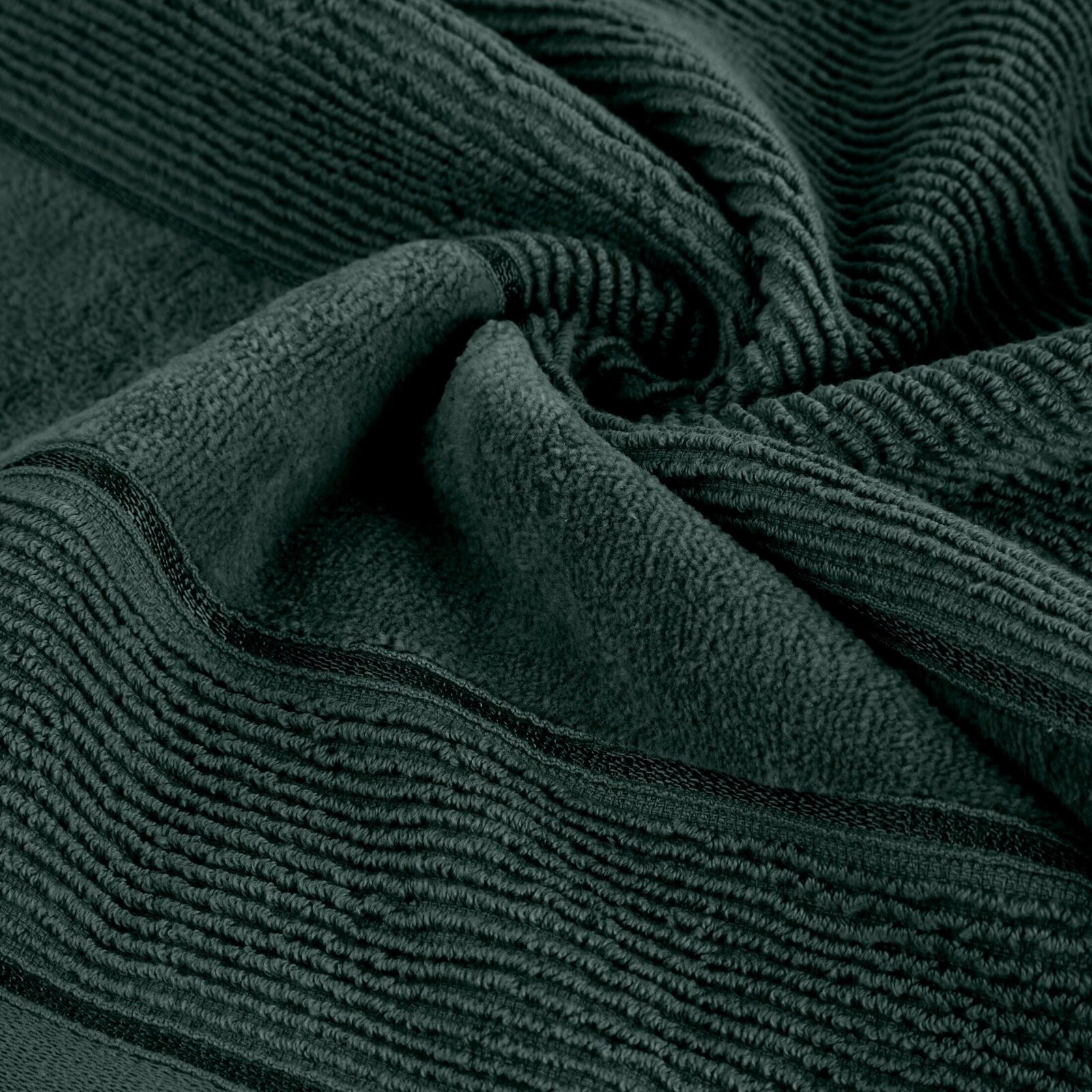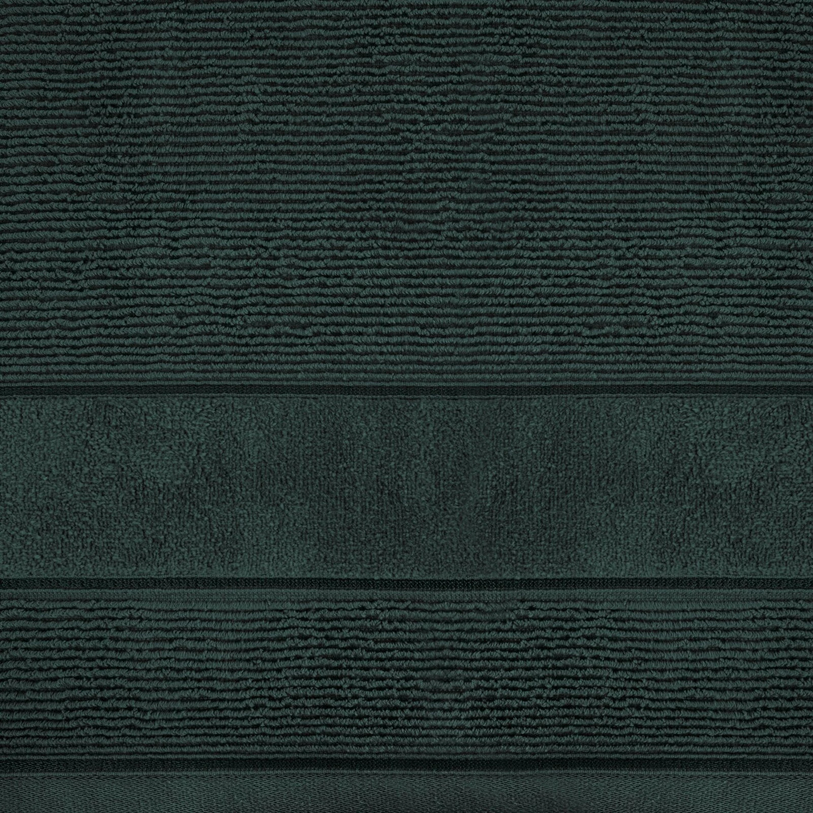 Ręcznik bawełniany o strukturze w prążki z welurową bordiurą szerokość: 50 cm, długość: 90 cm, kolor: ciemnozielony, Gramatura: 500 GSM, Skład: 100% bawełna