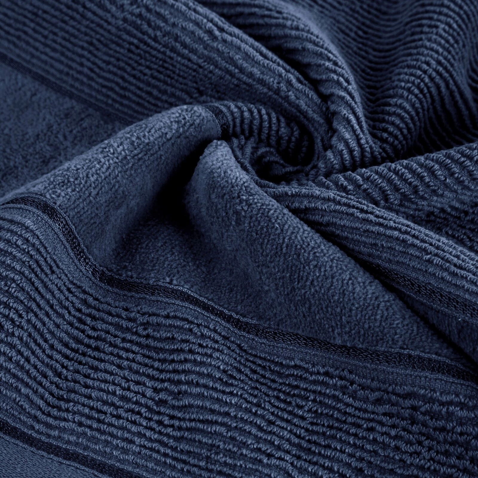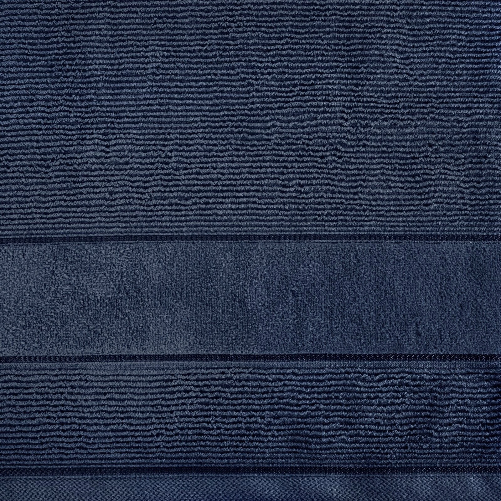 Ręcznik bawełniany o strukturze w prążki z welurową bordiurą szerokość: 30 cm, długość: 50 cm, kolor: granatowy, Gramatura: 500 GSM, Skład: 100% bawełna