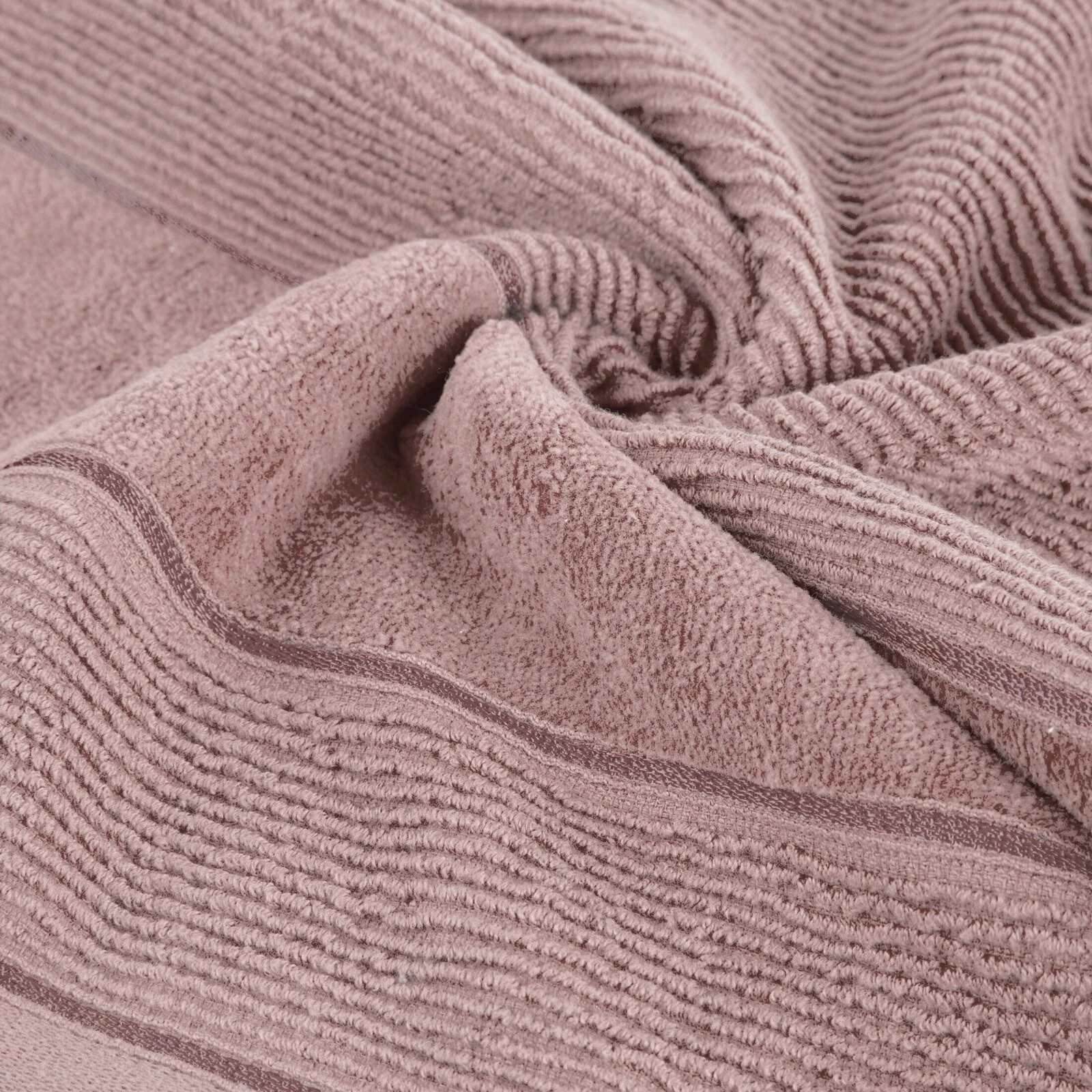 Ręcznik bawełniany o strukturze w prążki z welurową bordiurą szerokość: 50 cm, długość: 90 cm, kolor: pudrowy róż, Gramatura: 500 GSM, Skład: 100% bawełna