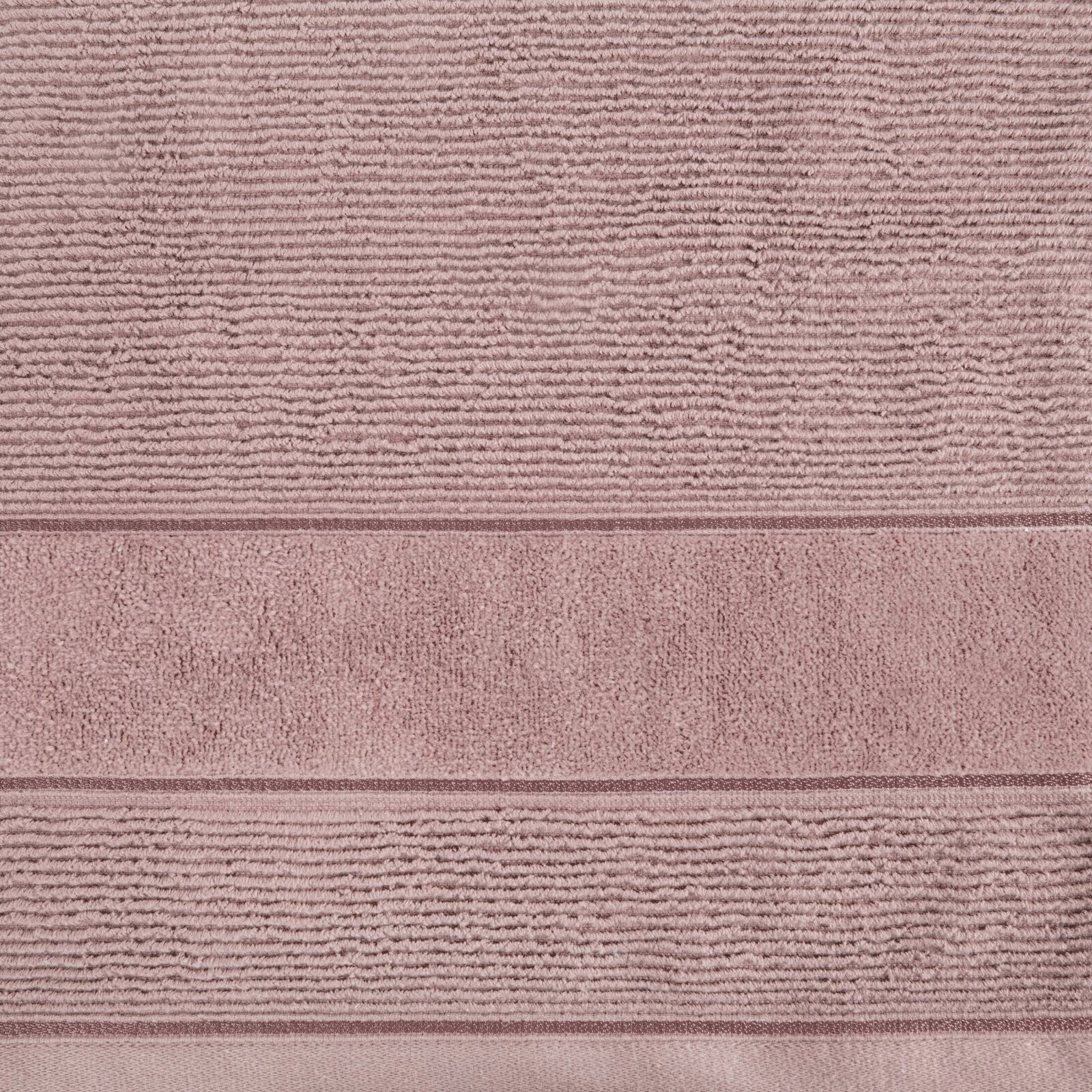 Ręcznik bawełniany o strukturze w prążki z welurową bordiurą szerokość: 70 cm, długość: 140 cm, kolor: pudrowy róż, Gramatura: 500 GSM, Skład: 100% bawełna