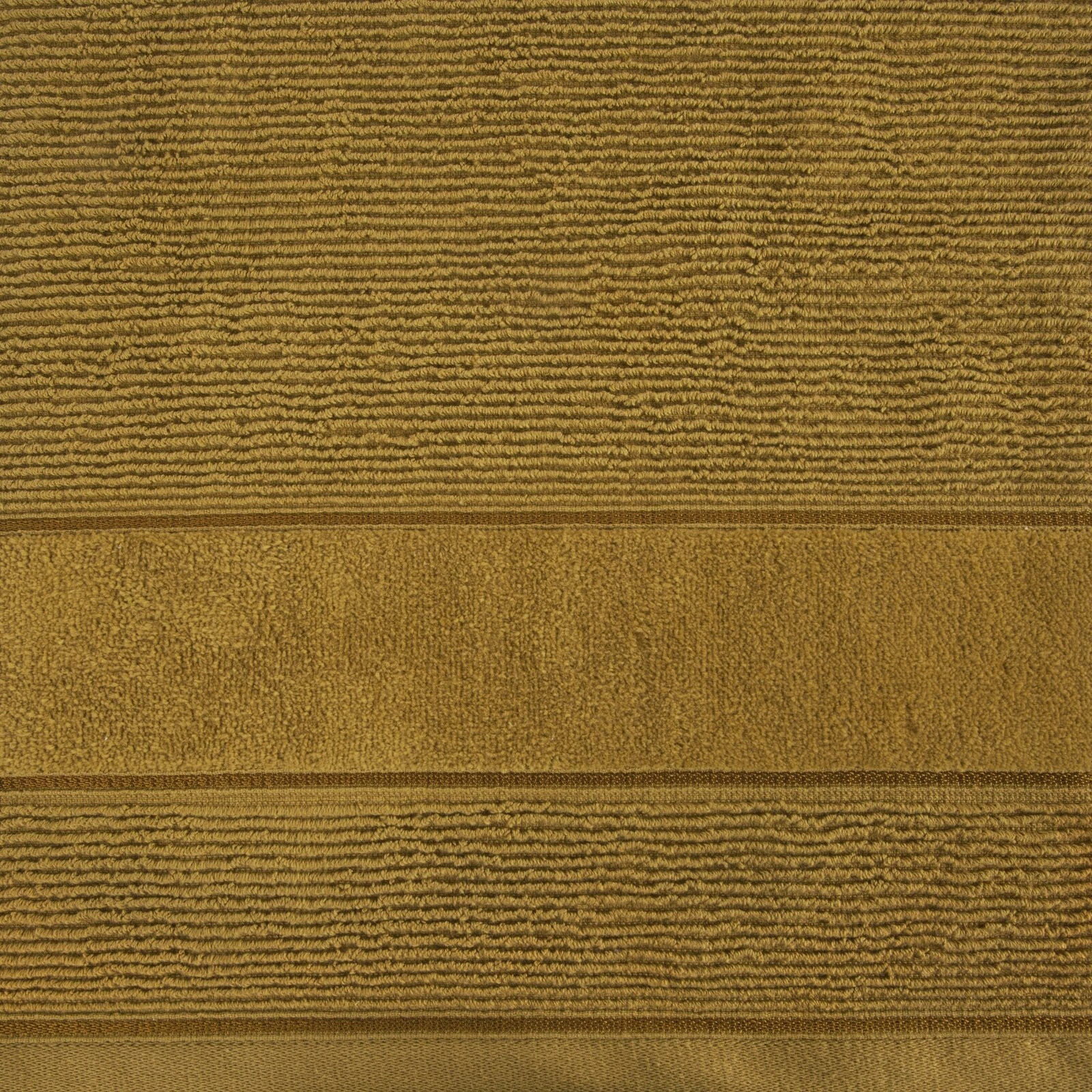 Ręcznik bawełniany o strukturze w prążki z welurową bordiurą szerokość: 50 cm, długość: 90 cm, kolor: miodowy, Gramatura: 500 GSM, Skład: 100% bawełna