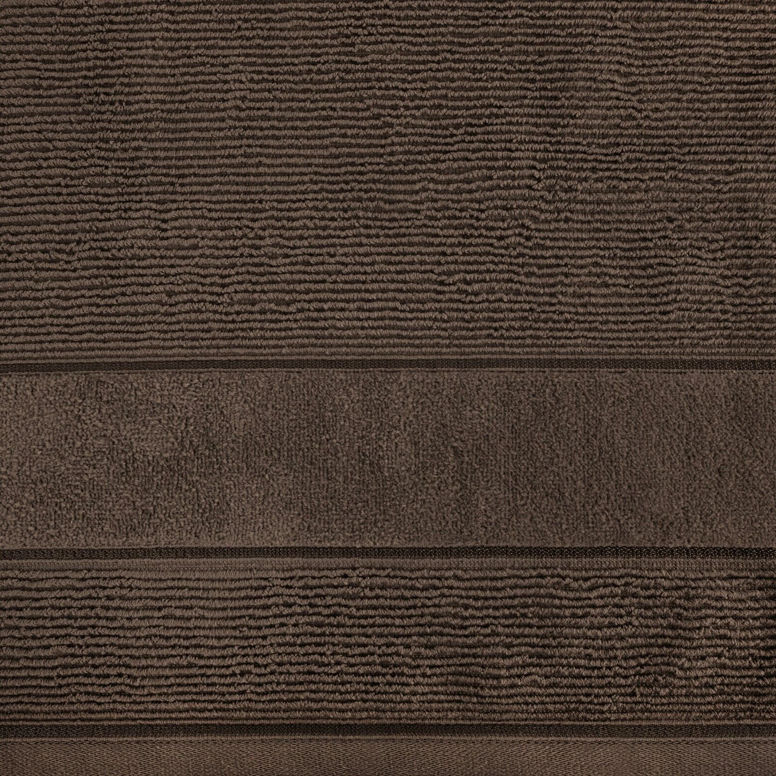 Ręcznik bawełniany o strukturze w prążki z welurową bordiurą szerokość: 30 cm, długość: 50 cm, kolor: brązowy, Gramatura: 500 GSM, Skład: 100% bawełna