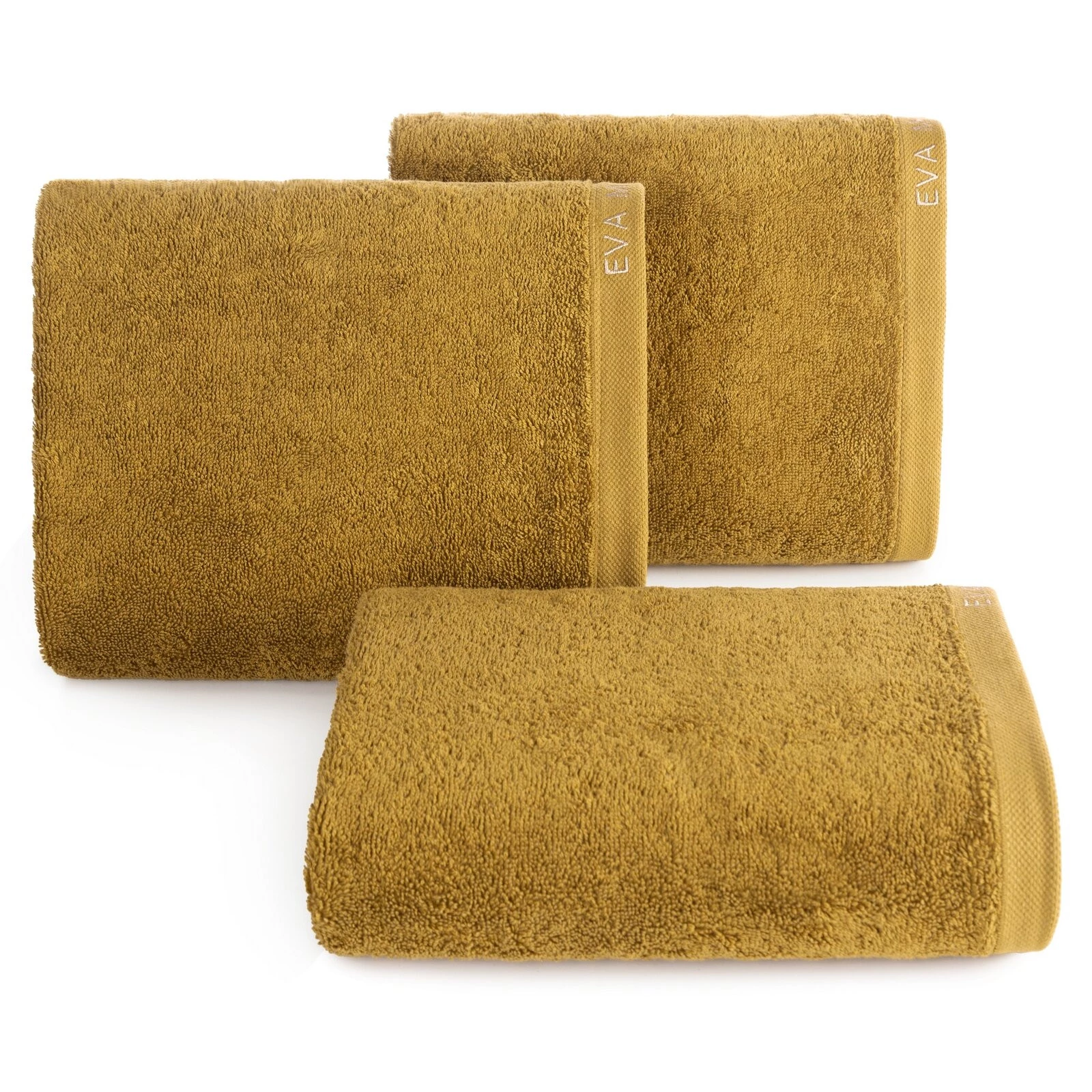 Ręcznik zdobiony haftem szerokość: 70 cm, długość: 140 cm, kolor: miodowy, Gramatura: 550 GSM, Skład: 100% bawełna