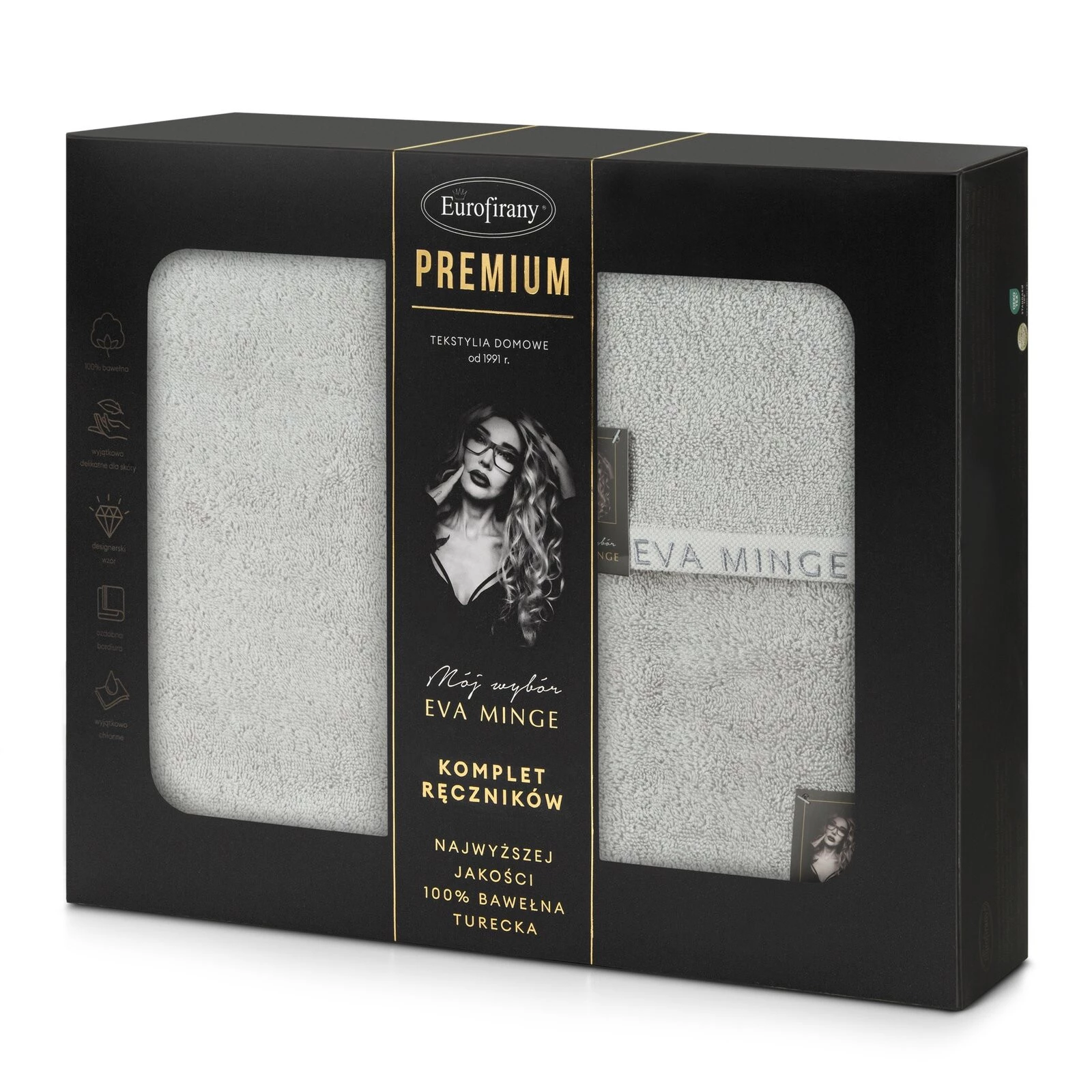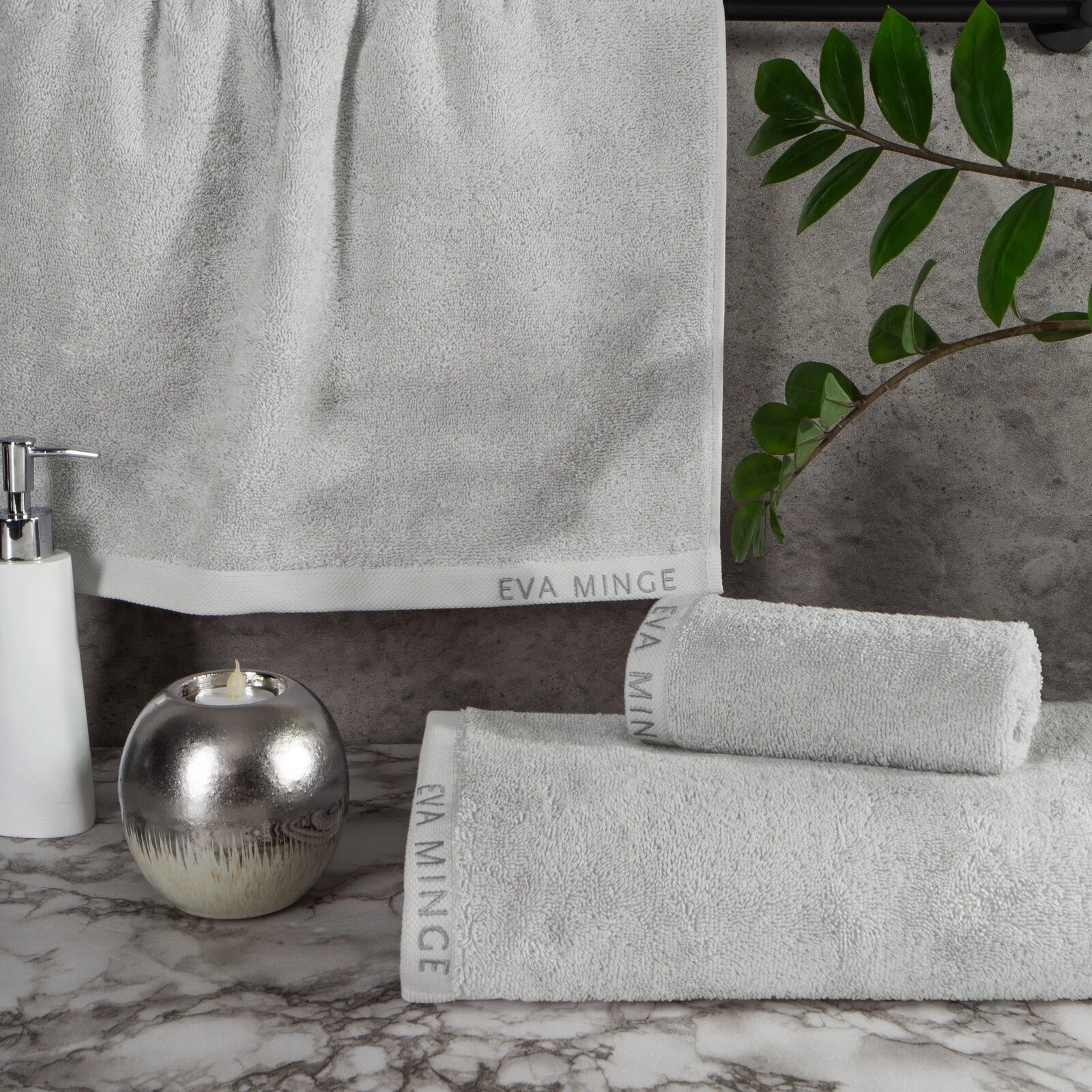 Komplet ręczników szerokość: 46 cm, długość: 36 cm, kolor: srebrny, Gramatura: 550 GSM, Skład: 100% bawełna