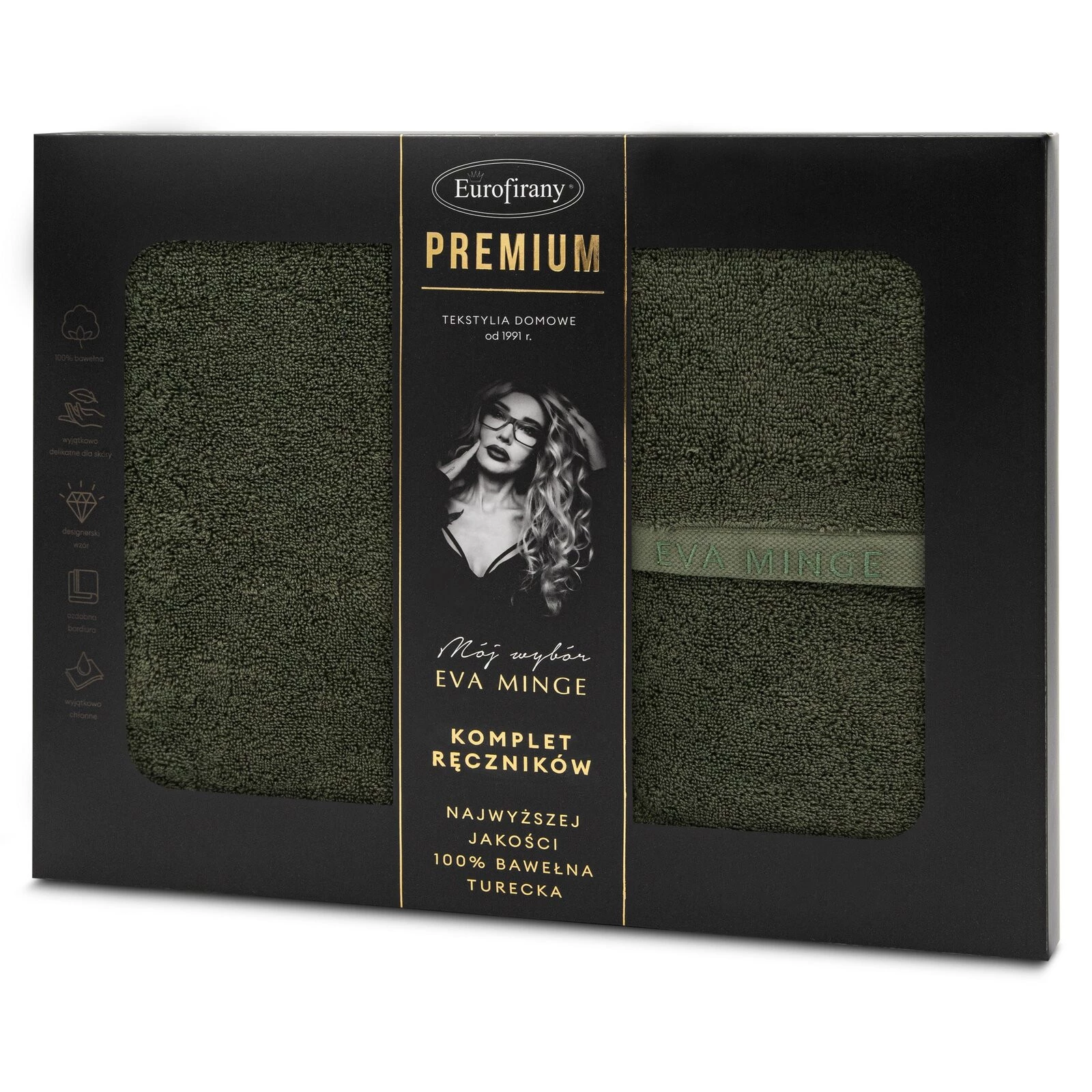 Komplet ręczników szerokość: 46 cm, długość: 36 cm, kolor: ciemnooliwkowy, Gramatura: 550 GSM, Skład: 100% bawełna