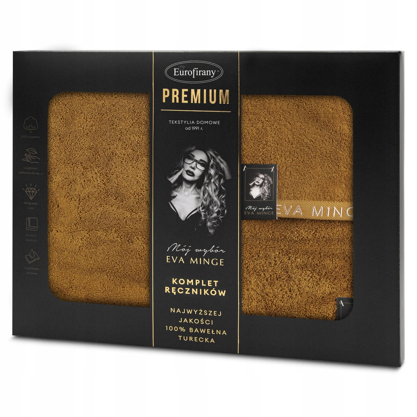 Komplet ręczników szerokość: 46 cm, długość: 36 cm, kolor: miodowy, Gramatura: 550 GSM, Skład: 100% bawełna