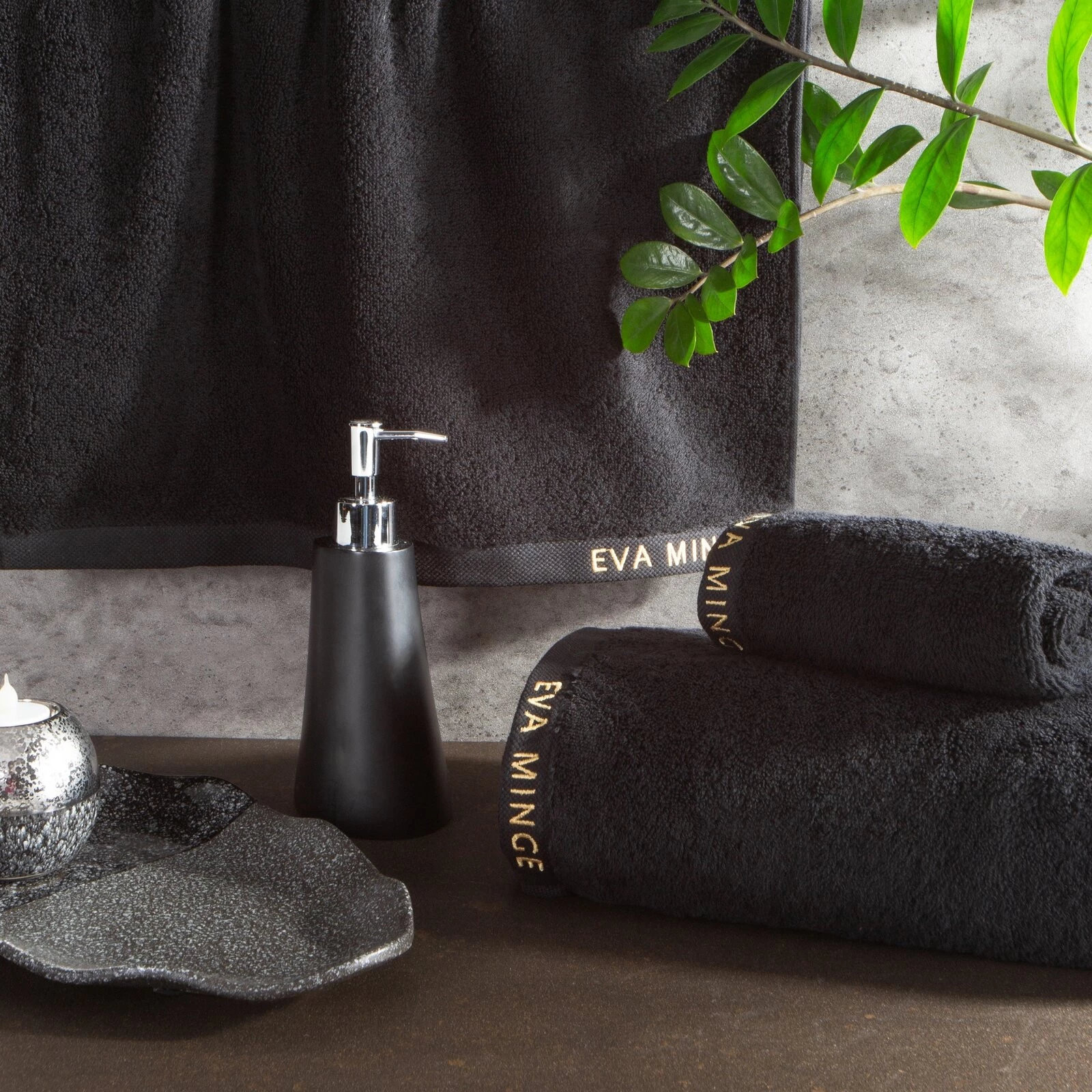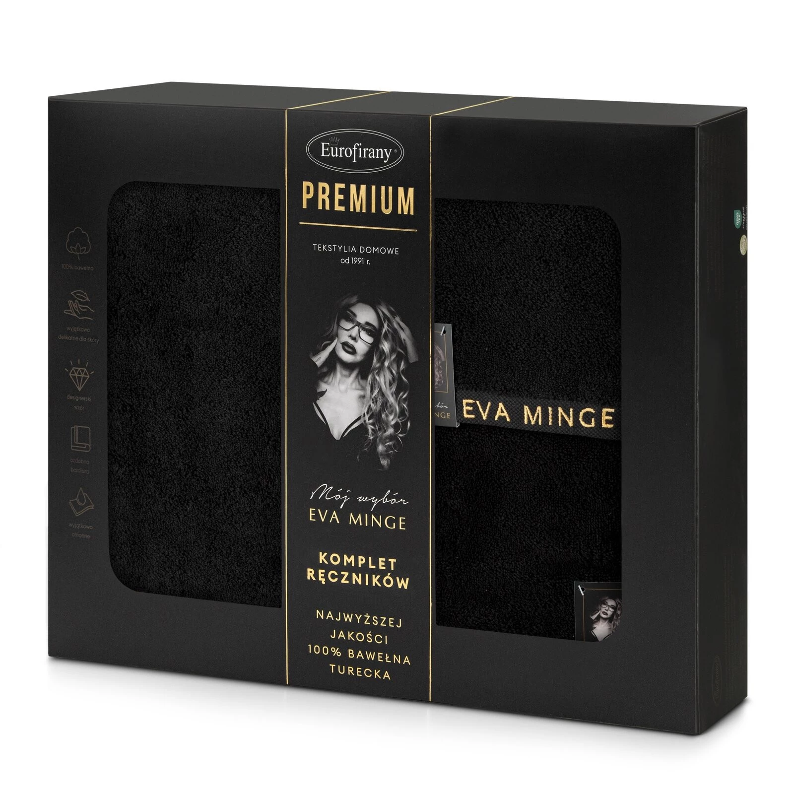 Komplet ręczników szerokość: 46 cm, długość: 36 cm, kolor: czarny, Gramatura: 550 GSM, Skład: 100% bawełna