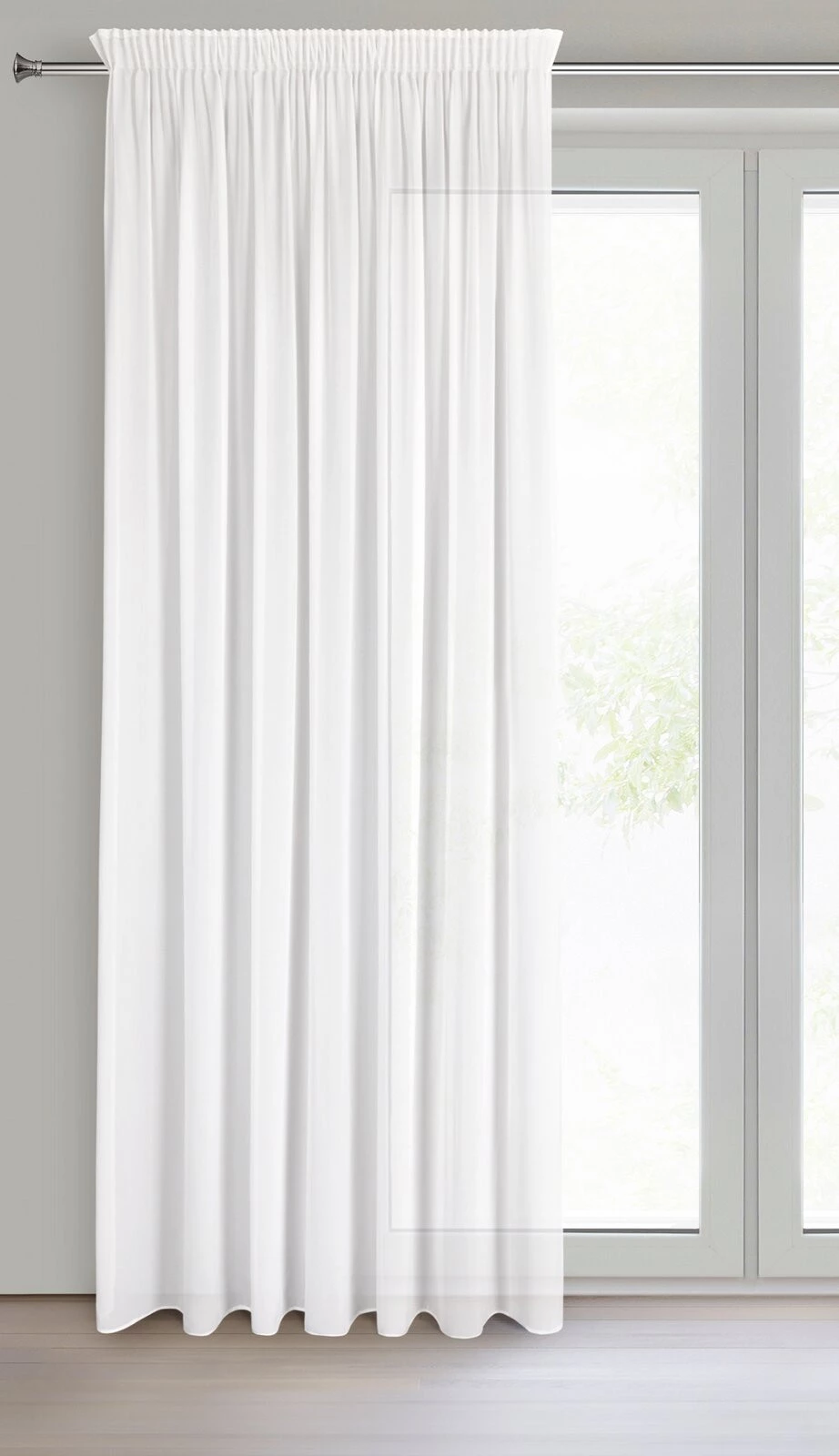 Firana gotowa z gładkiej tkaniny szyfonowej szerokość: 140 cm, długość: 270 cm, kolor: biały, Gramatura: 60 GSM, Skład: 100% poliester