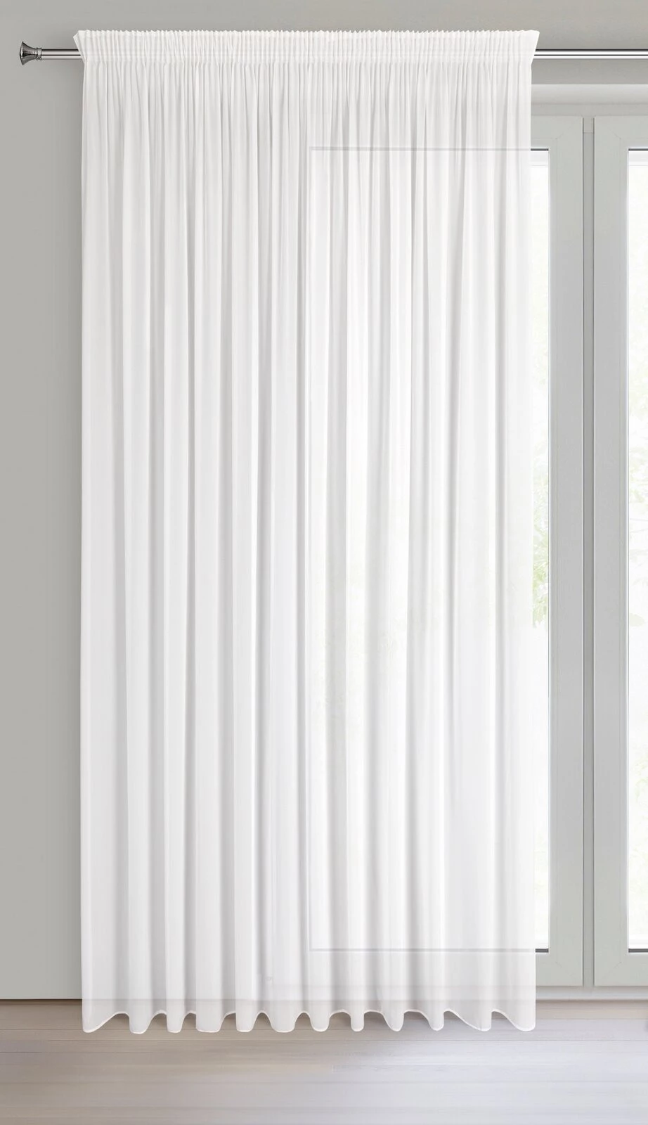 Firana gotowa z gładkiej tkaniny szyfonowej szerokość: 300 cm, długość: 270 cm, kolor: biały, Gramatura: 60 GSM, Skład: 100% poliester
