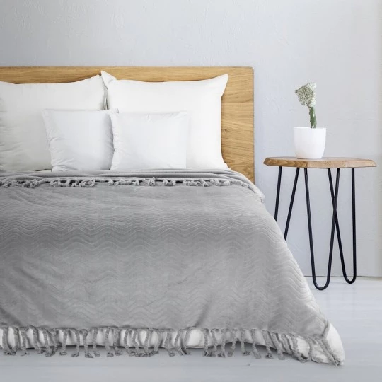 Koc flano z frędzlami szerokość: 150 cm, długość: 200 cm, kolor: srebrny, Gramatura: 280 GSM, Skład: 100% poliester