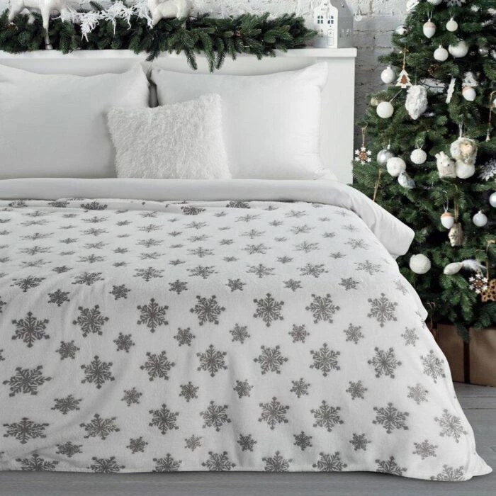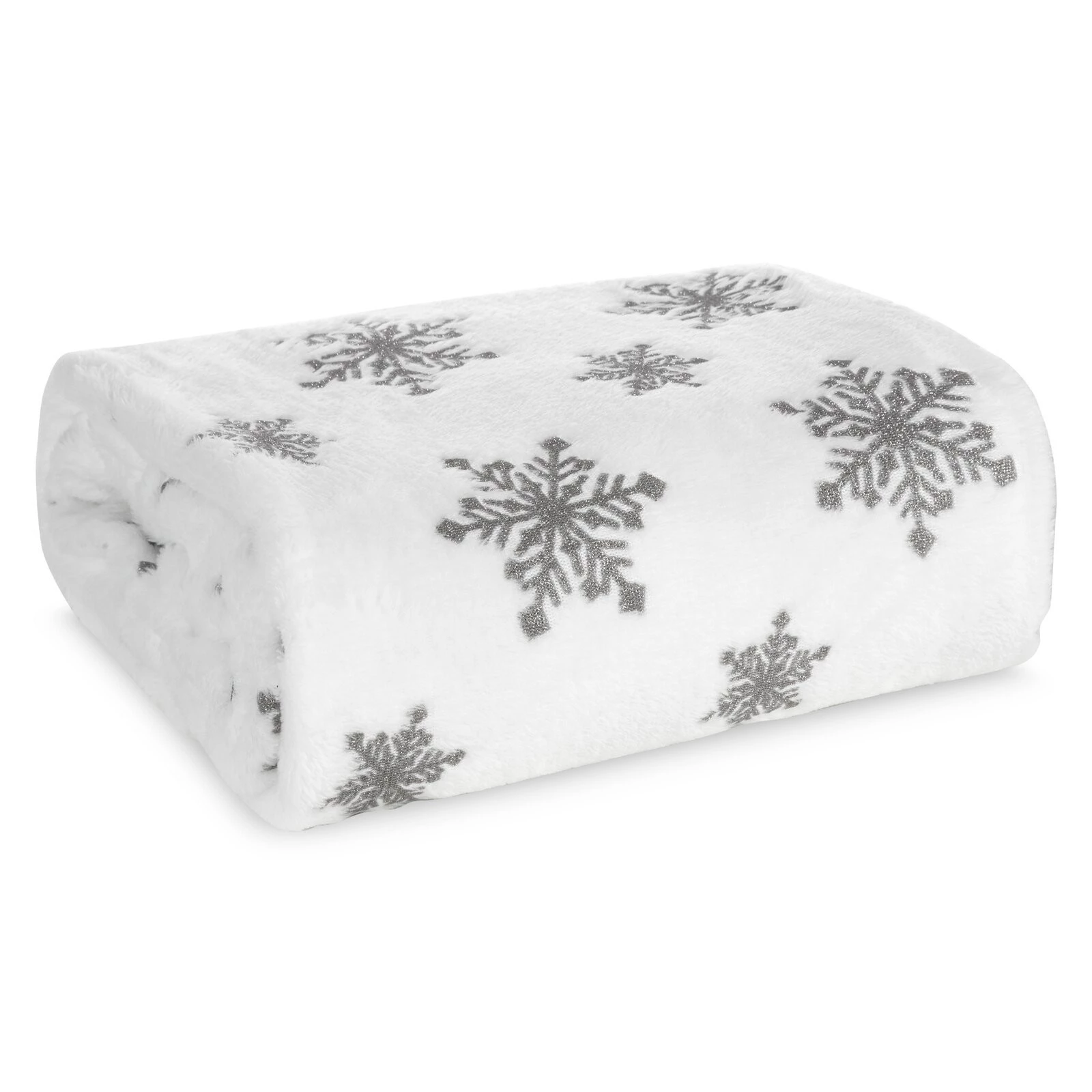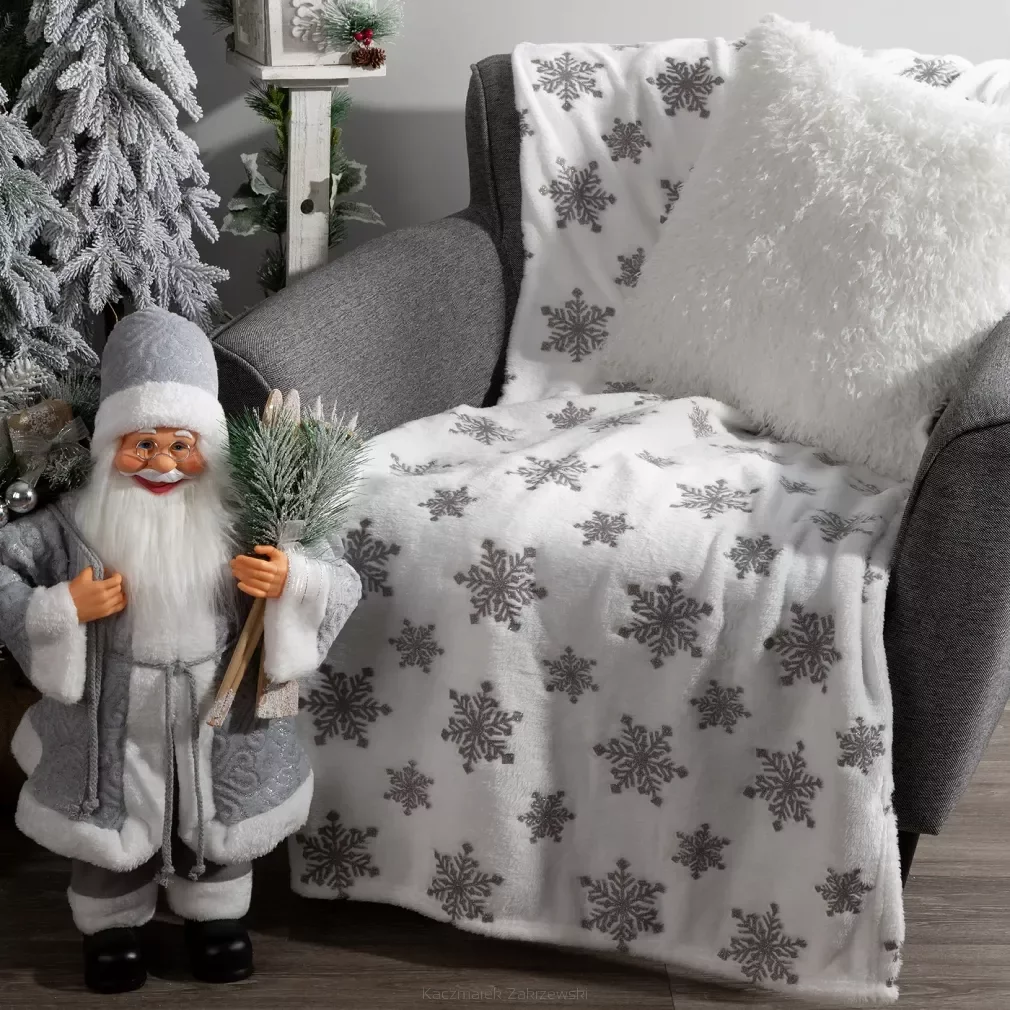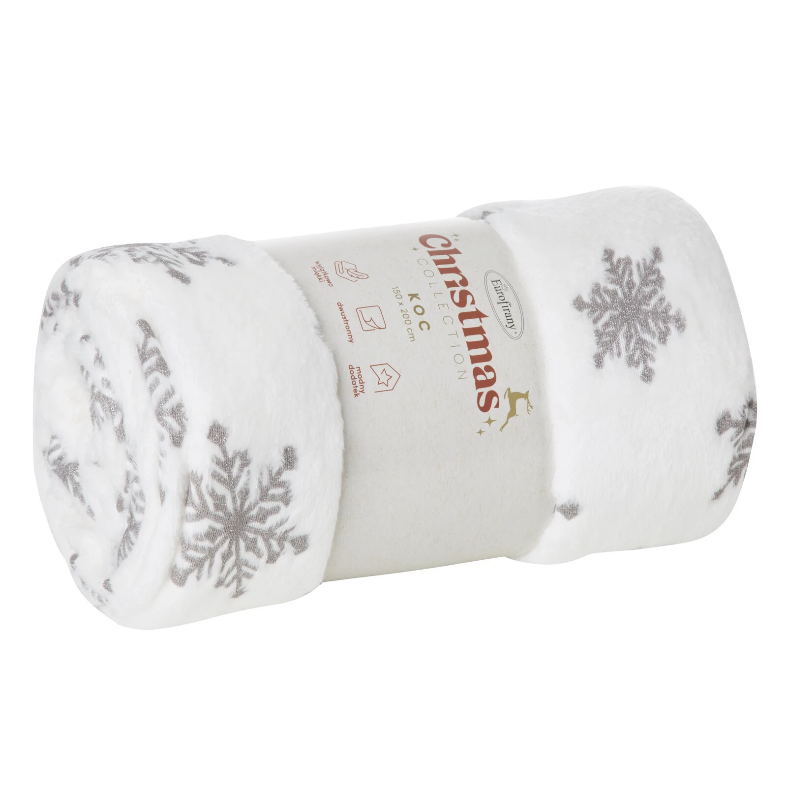 świąteczny koc dekoracyjny szerokość: 150 cm, długość: 200 cm, kolor: biały, Gramatura: 240 GSM, Skład: 100% poliester