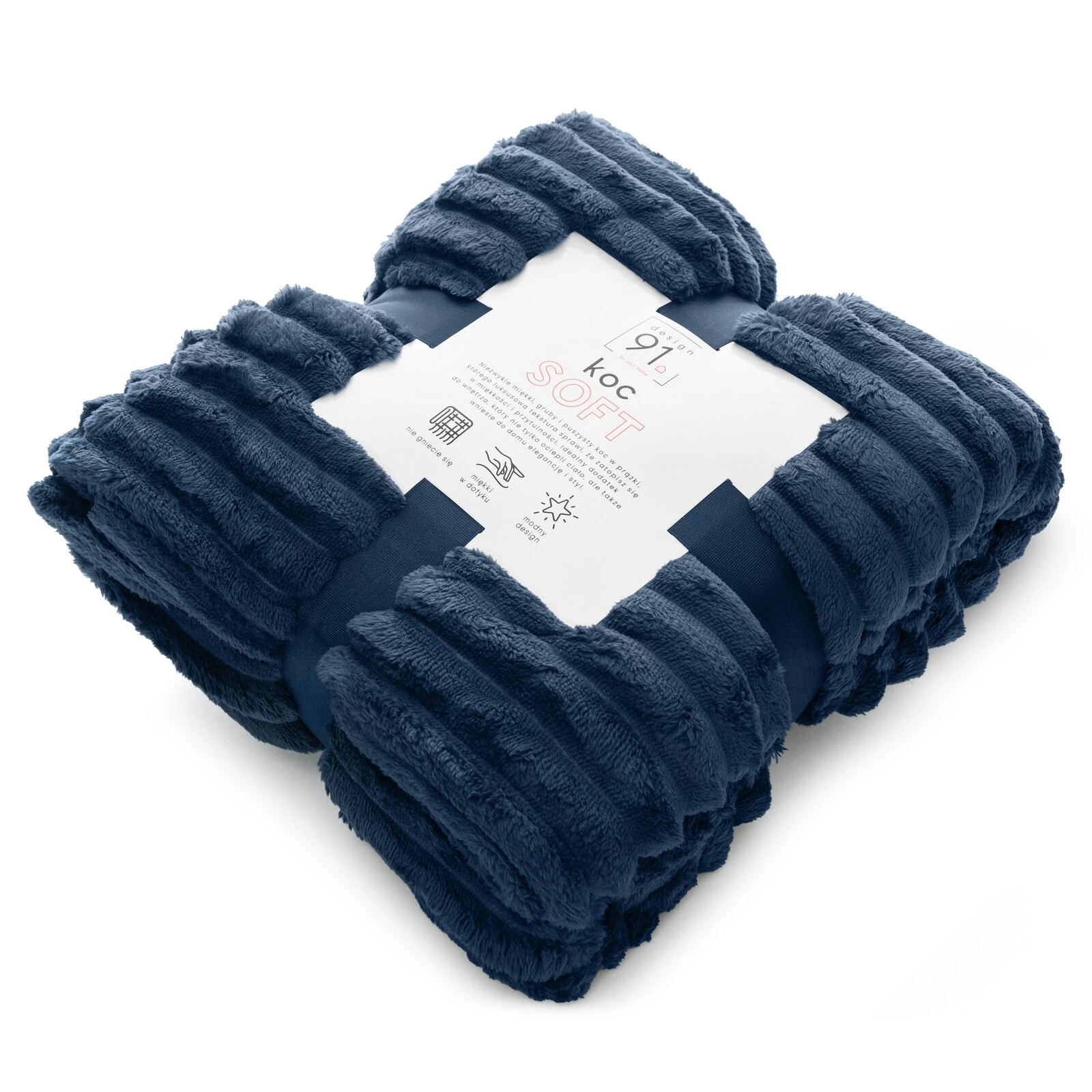 - Klasyczny koc z przyjemnego w dotyku włókna w technologii mikroflano. Jednobarwna, puszysta faktura ozdobiona jest minimalistycznym tłoczeniem w formie jodełki. szerokość: 150 cm, długość: 200 cm, kolor: granatowy, Gramatura: 300 GSM, Skład: 100% polieste