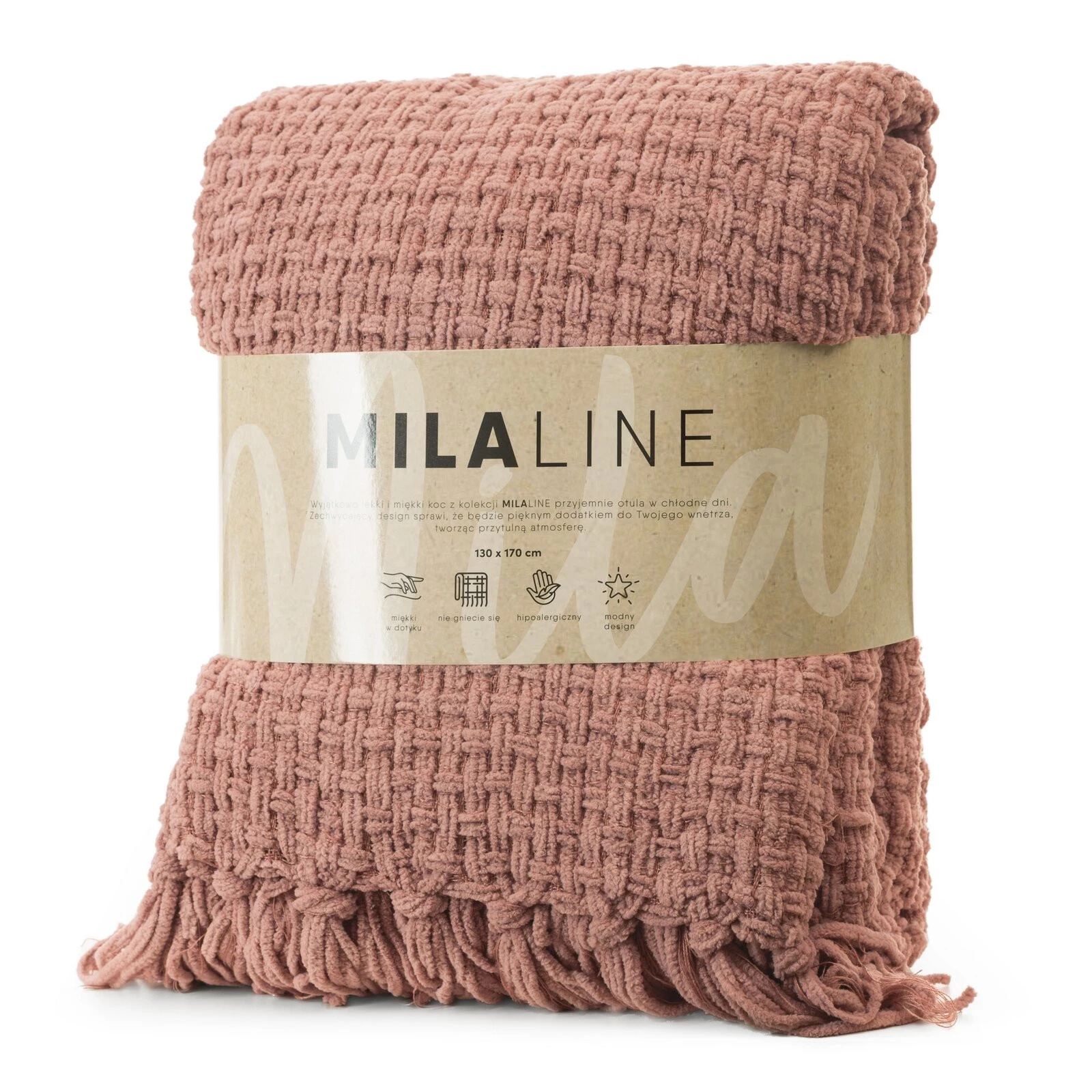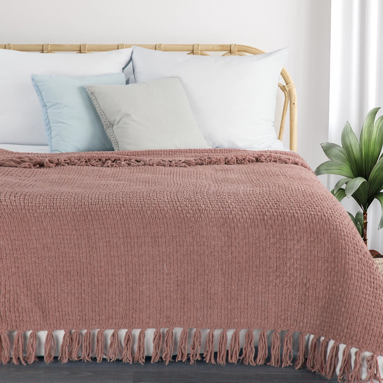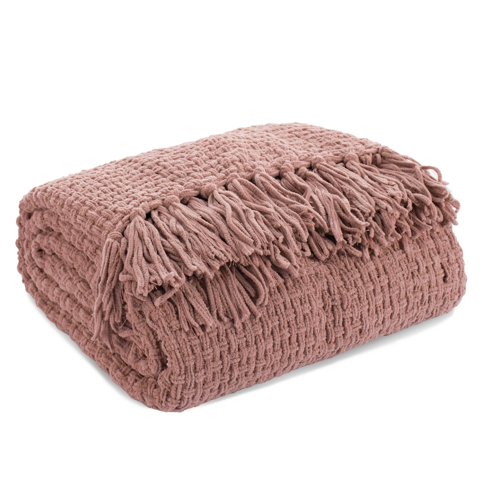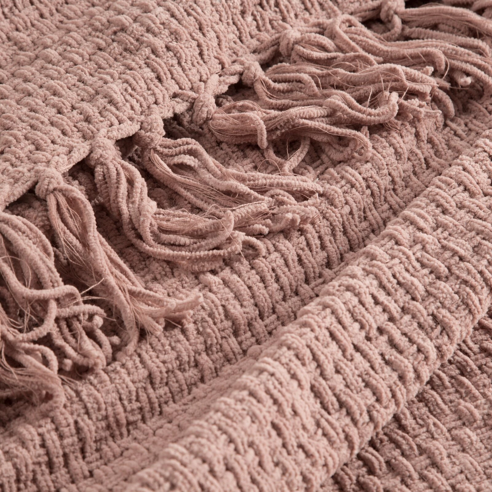 - Tkany koc z frędzlami szerokość: 130 cm, długość: 170 cm, kolor: ciemnoróżowy, Gramatura: 380 GSM, Skład: 100% poliester