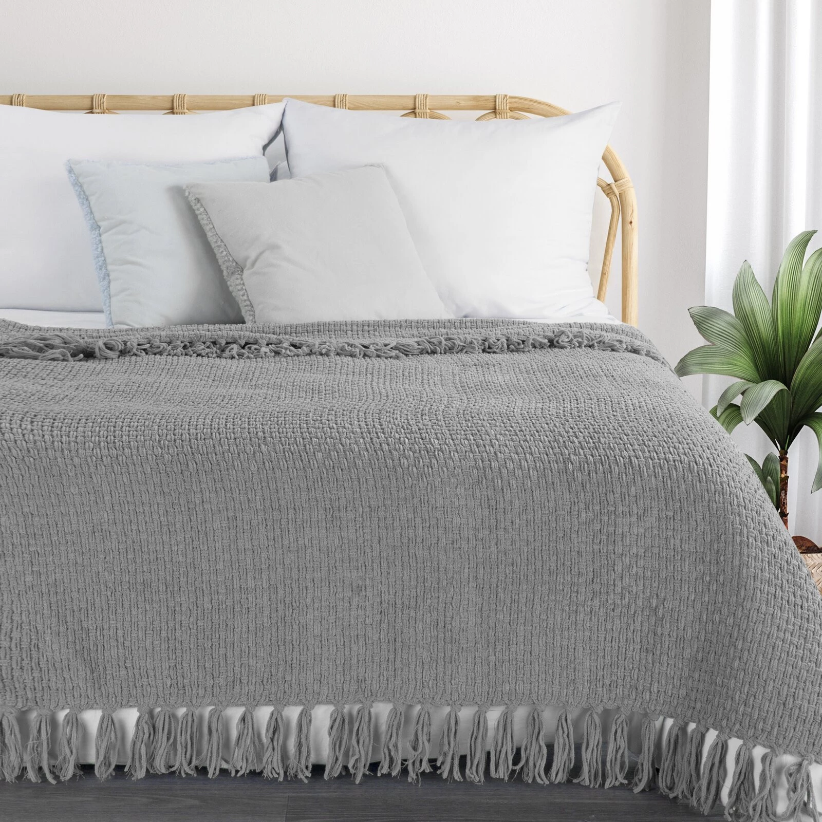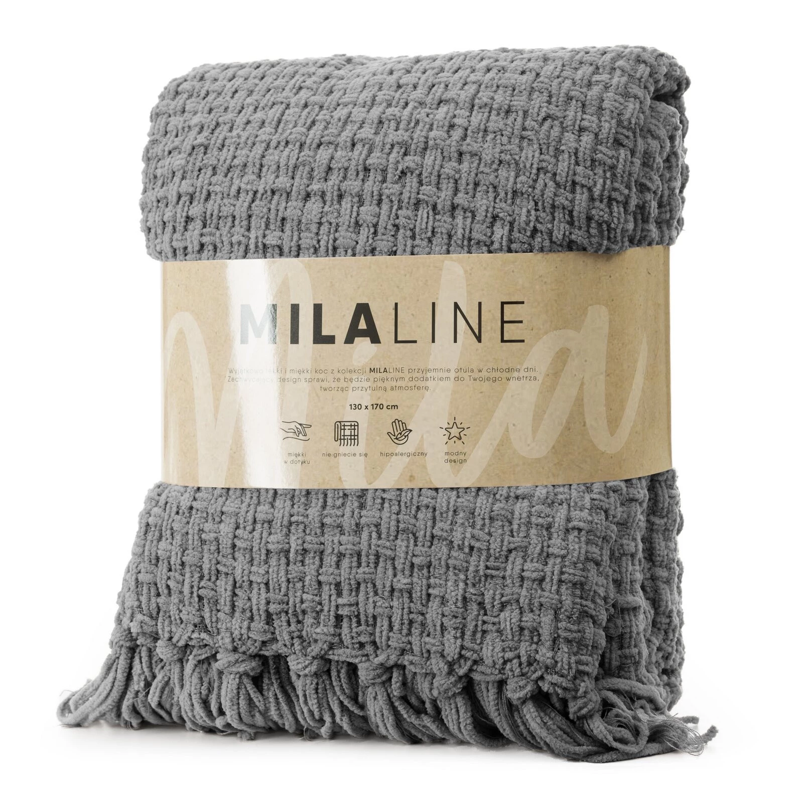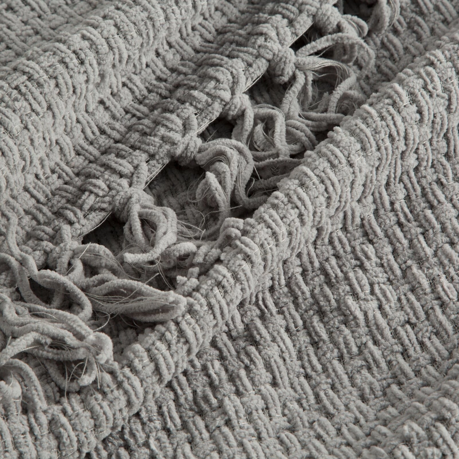 - Tkany koc z frędzlami szerokość: 130 cm, długość: 170 cm, kolor: szary, Gramatura: 380 GSM, Skład: 100% poliester