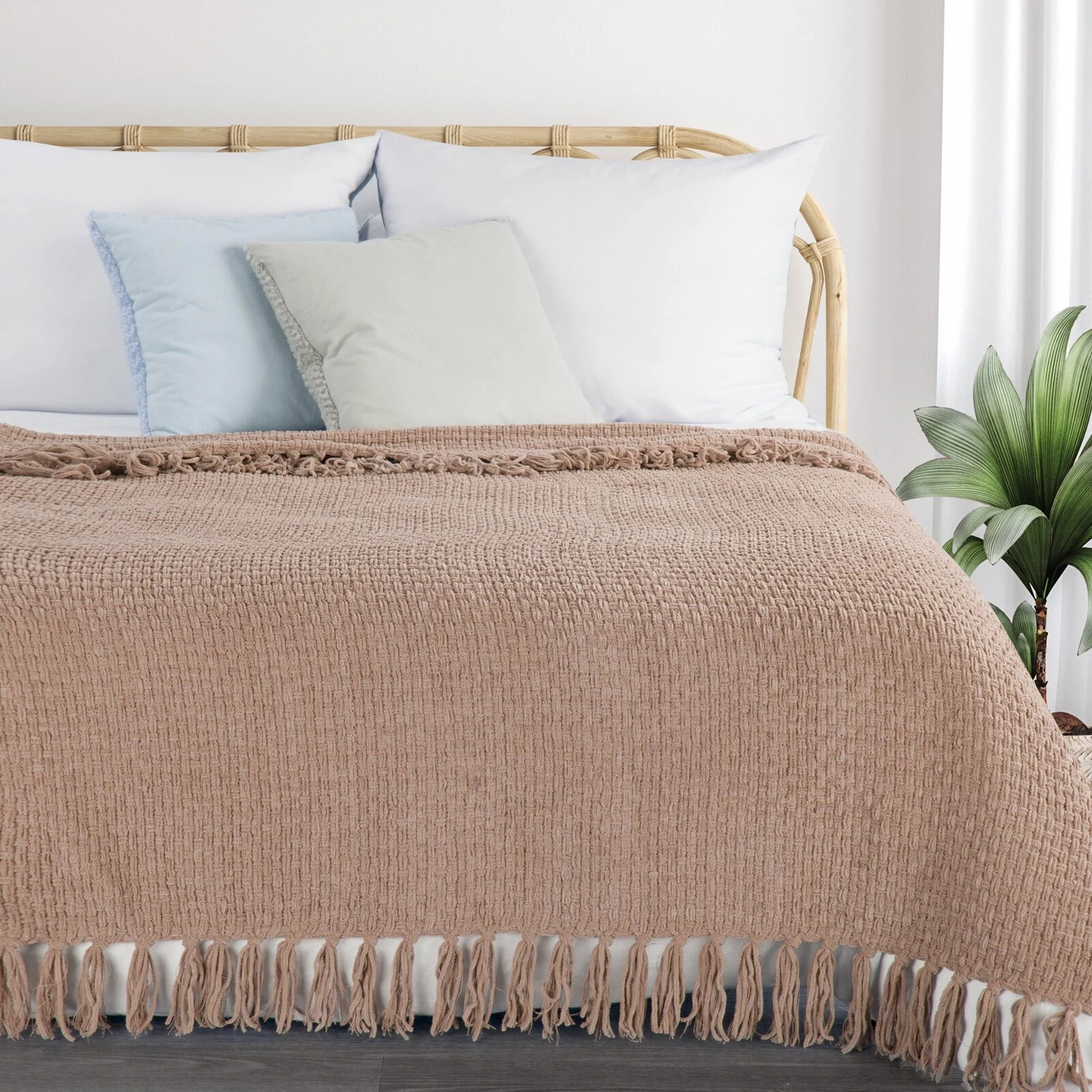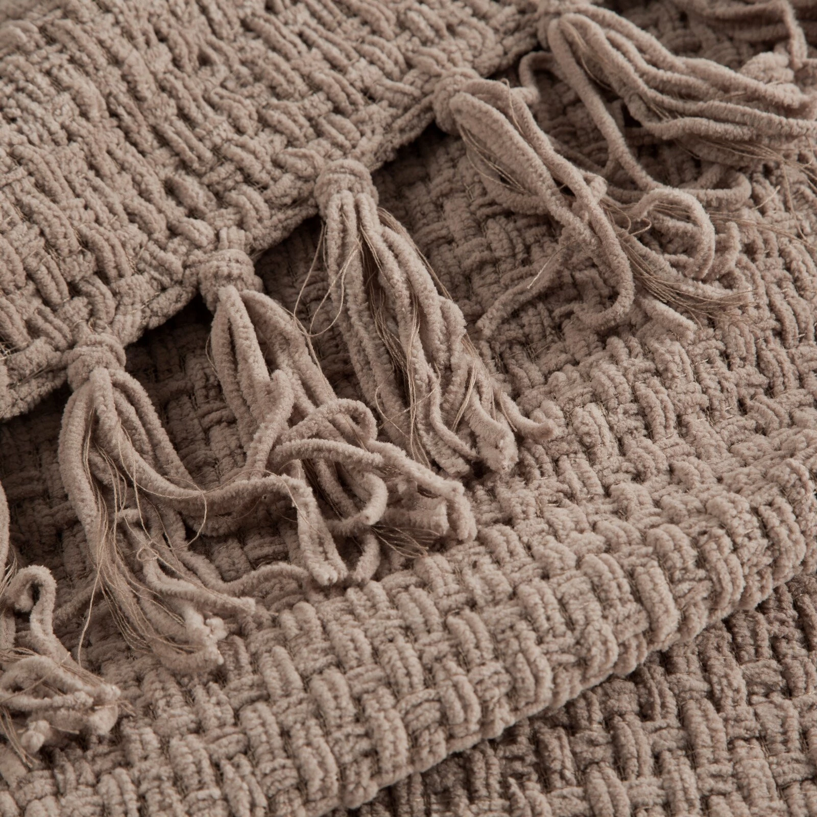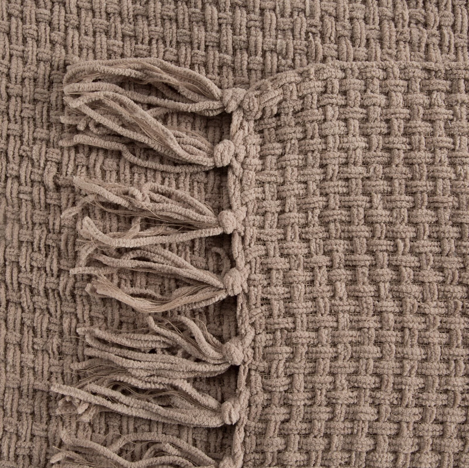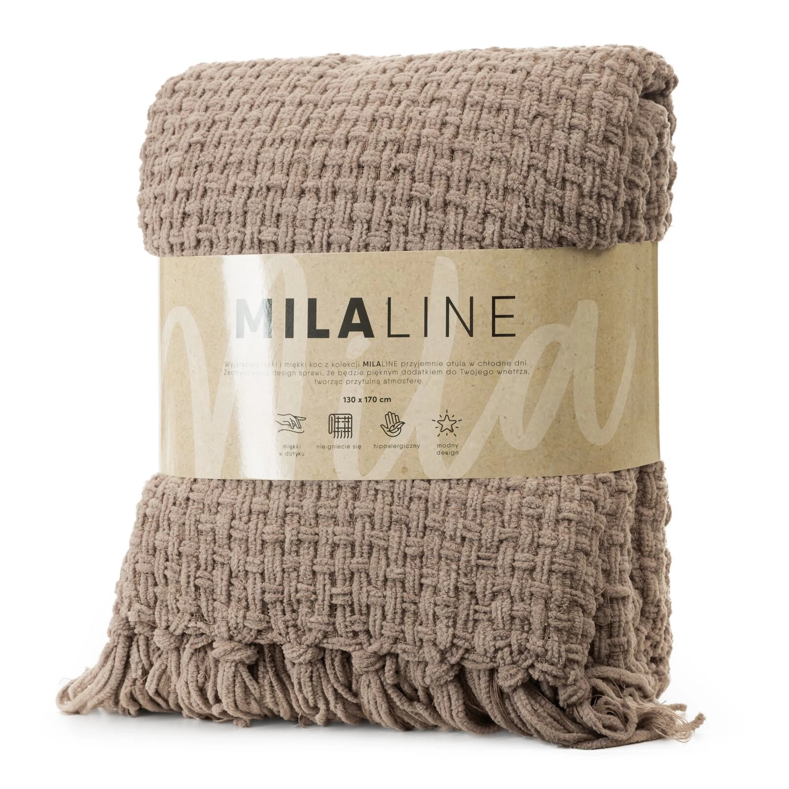 - Tkany koc z frędzlami szerokość: 130 cm, długość: 170 cm, kolor: ciemnobeżowy, Gramatura: 380 GSM, Skład: 100% poliester