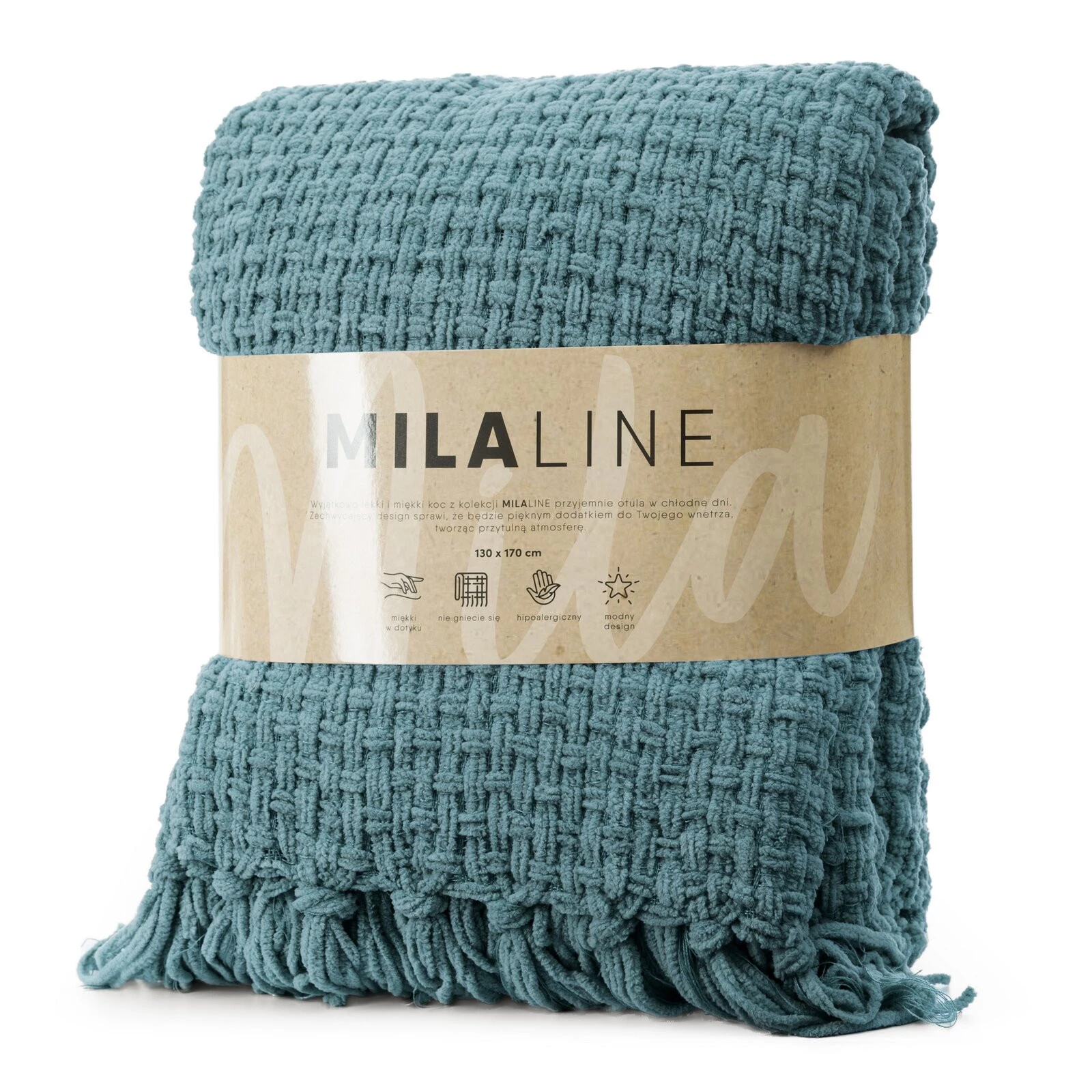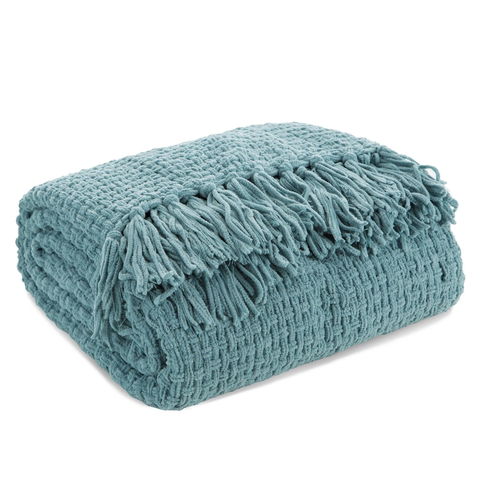 Tkany koc z frędzlami szerokość: 130 cm, długość: 170 cm, kolor: miętowy, Gramatura: 380 GSM, Skład: 100% poliester