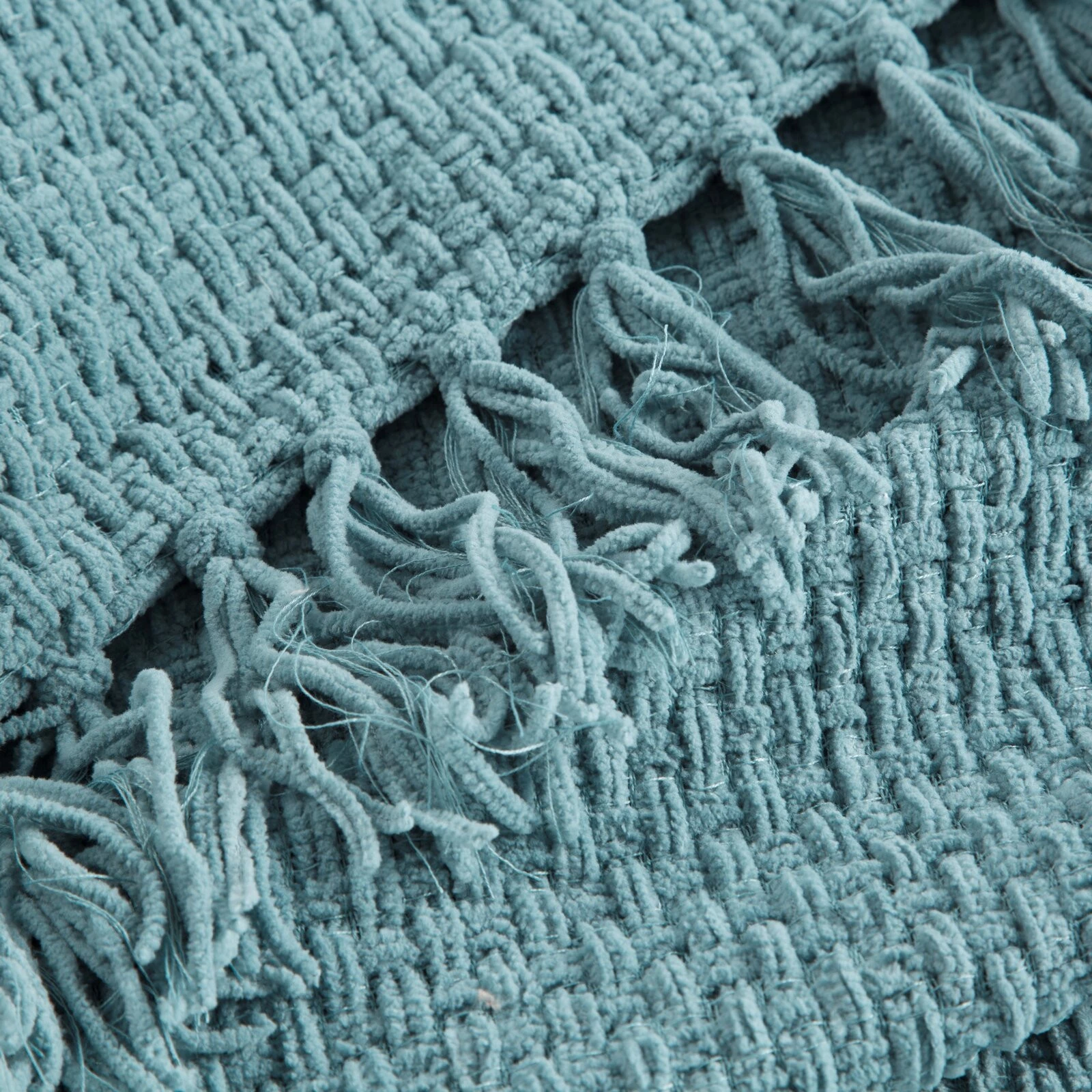 - Tkany koc z frędzlami szerokość: 130 cm, długość: 170 cm, kolor: miętowy, Gramatura: 380 GSM, Skład: 100% poliester