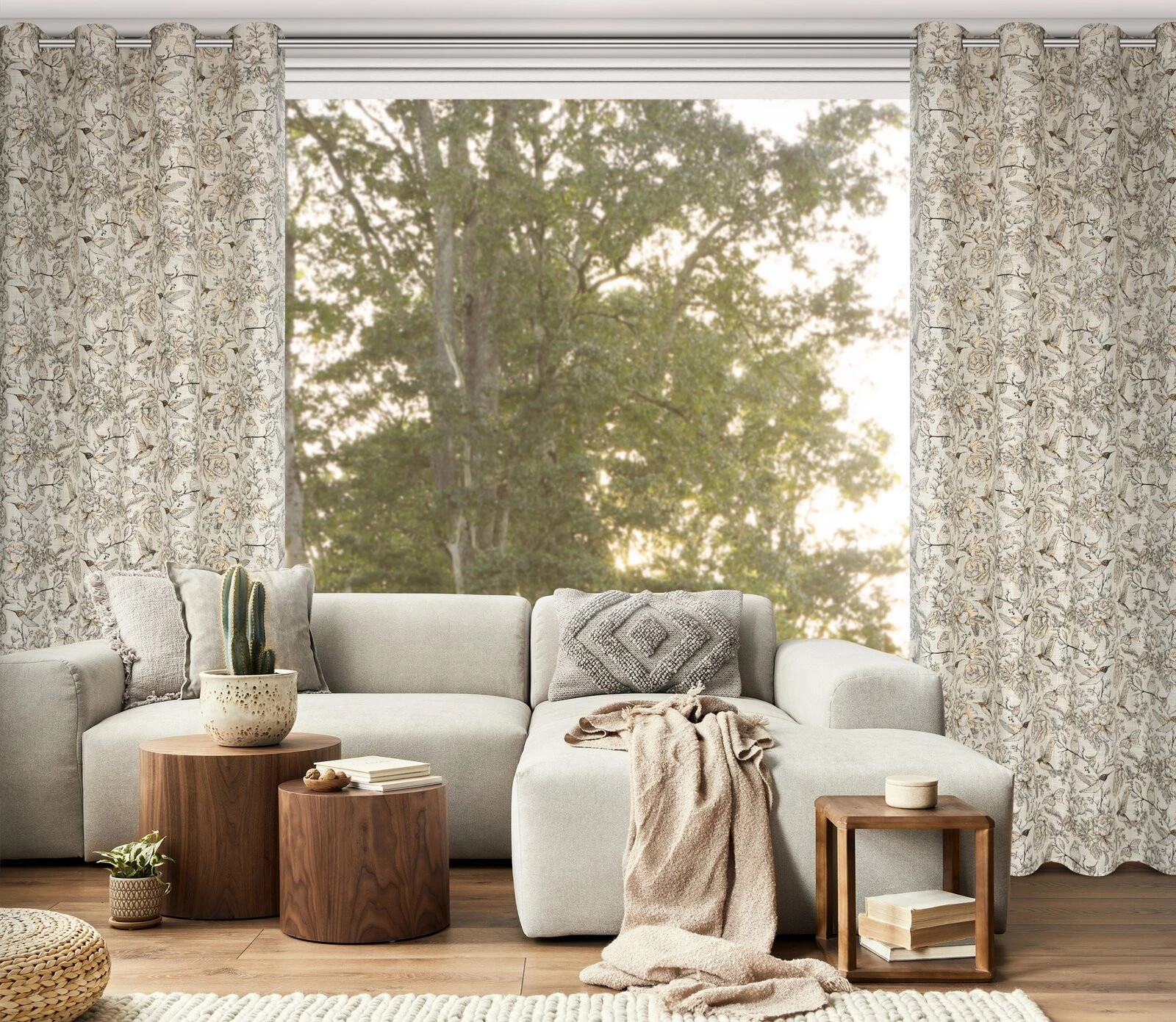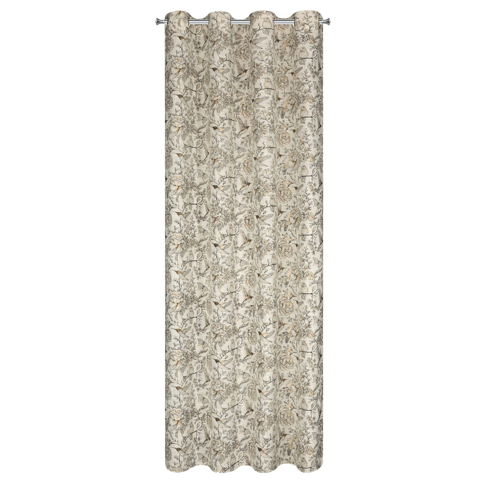 - Zasłona w stylu eko z motywem botanicznym i błyszczącym nadrukiem szerokość: 140 cm, długość: 250 cm, kolor: srebrny, Gramatura: 220 GSM, Skład: 100% poliester