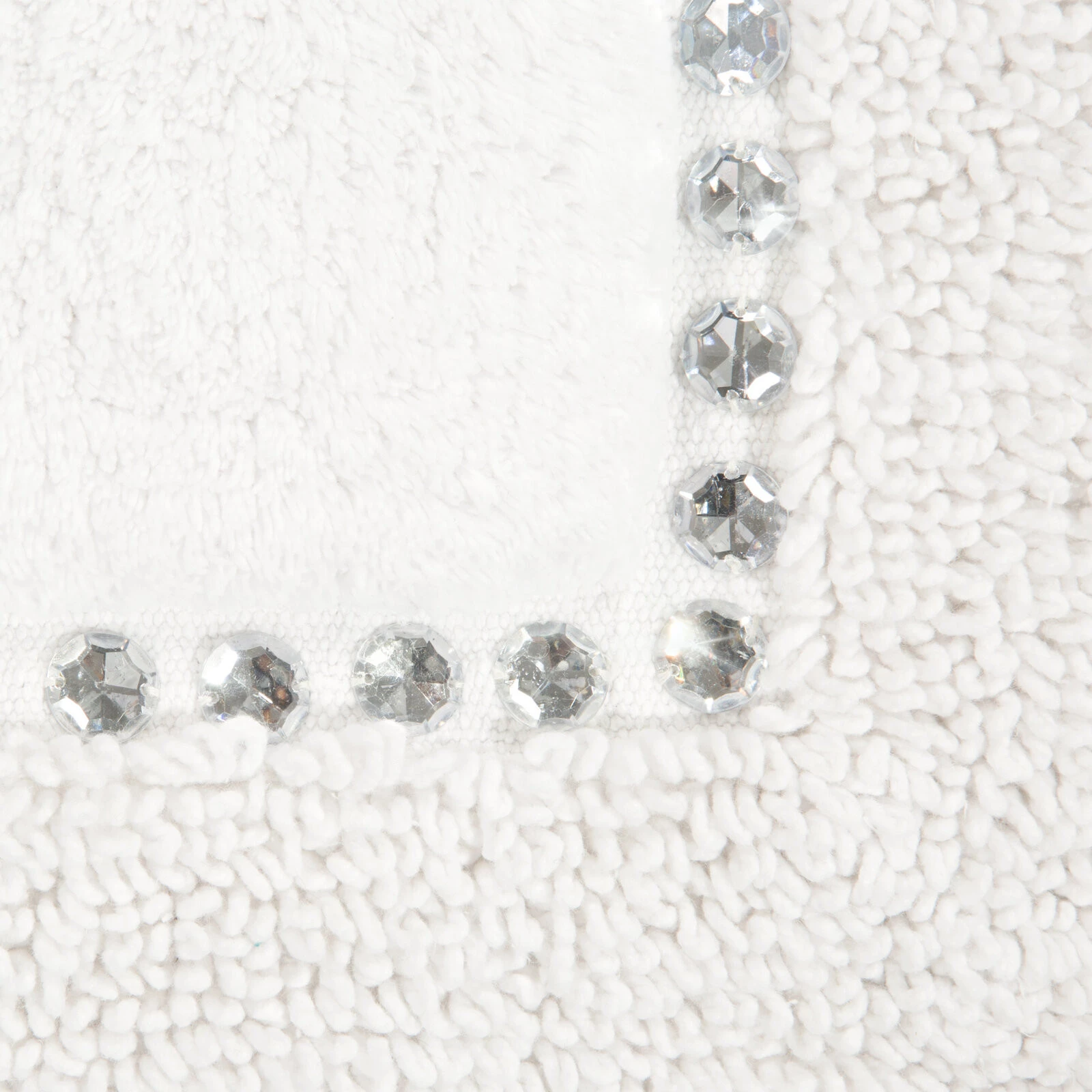 Miękki i efektowny dywanik zdobiony kryształkami szerokość: 50 cm, długość: 70 cm, kolor: biały, Gramatura: 1800 GSM, Skład: 100% bawełna