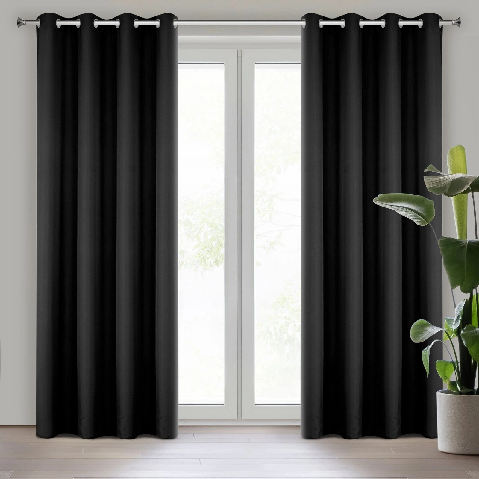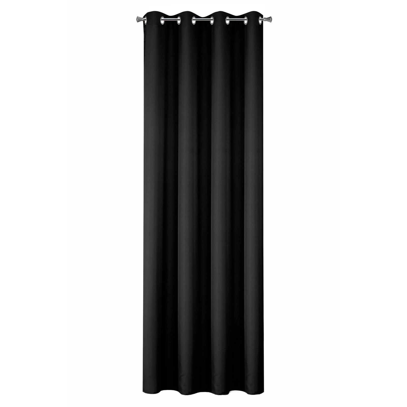 Piękna, jednokolorowa zasłona z miękkiej tkaniny o matowym wykończeniu i satynowym splocie. Uniwersalna dekoracja do każdego wnętrza. Łatwa w prasowaniu. szerokość: 140 cm, długość: 250 cm, kolor: czarny, Gramatura: 140 GSM, Skład: 100% poliester