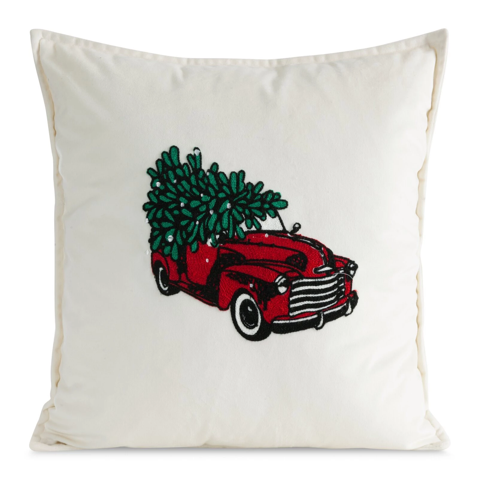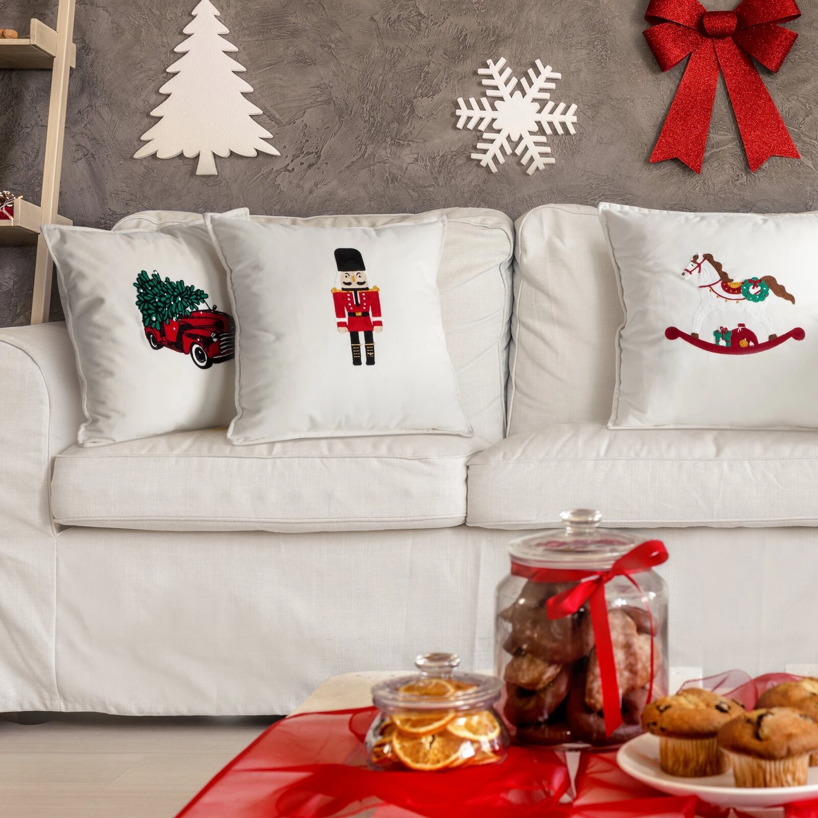 świąteczna welwetowa poszewka dekoracyjna z ozdobnym haftem szerokość: 45 cm, długość: 45 cm, kolor: biały, Gramatura: 280 GSM, Skład: 100% poliester