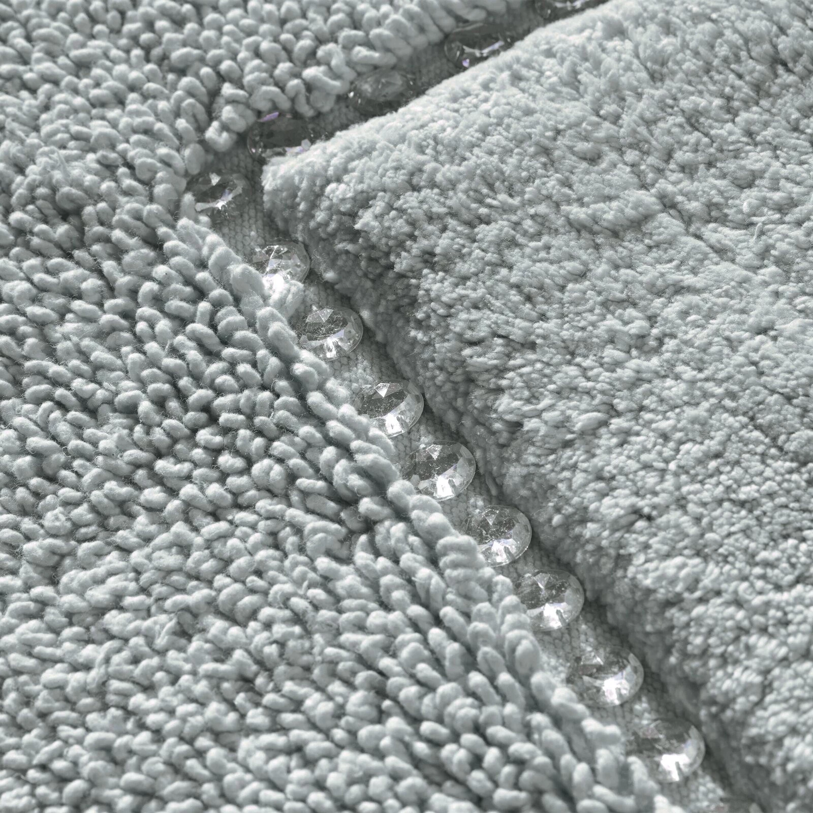 - Miękki i efektowny dywanik zdobiony kryształkami szerokość: 60 cm, długość: 90 cm, kolor: srebrny, Gramatura: 2100 GSM, Skład: 100% bawełna