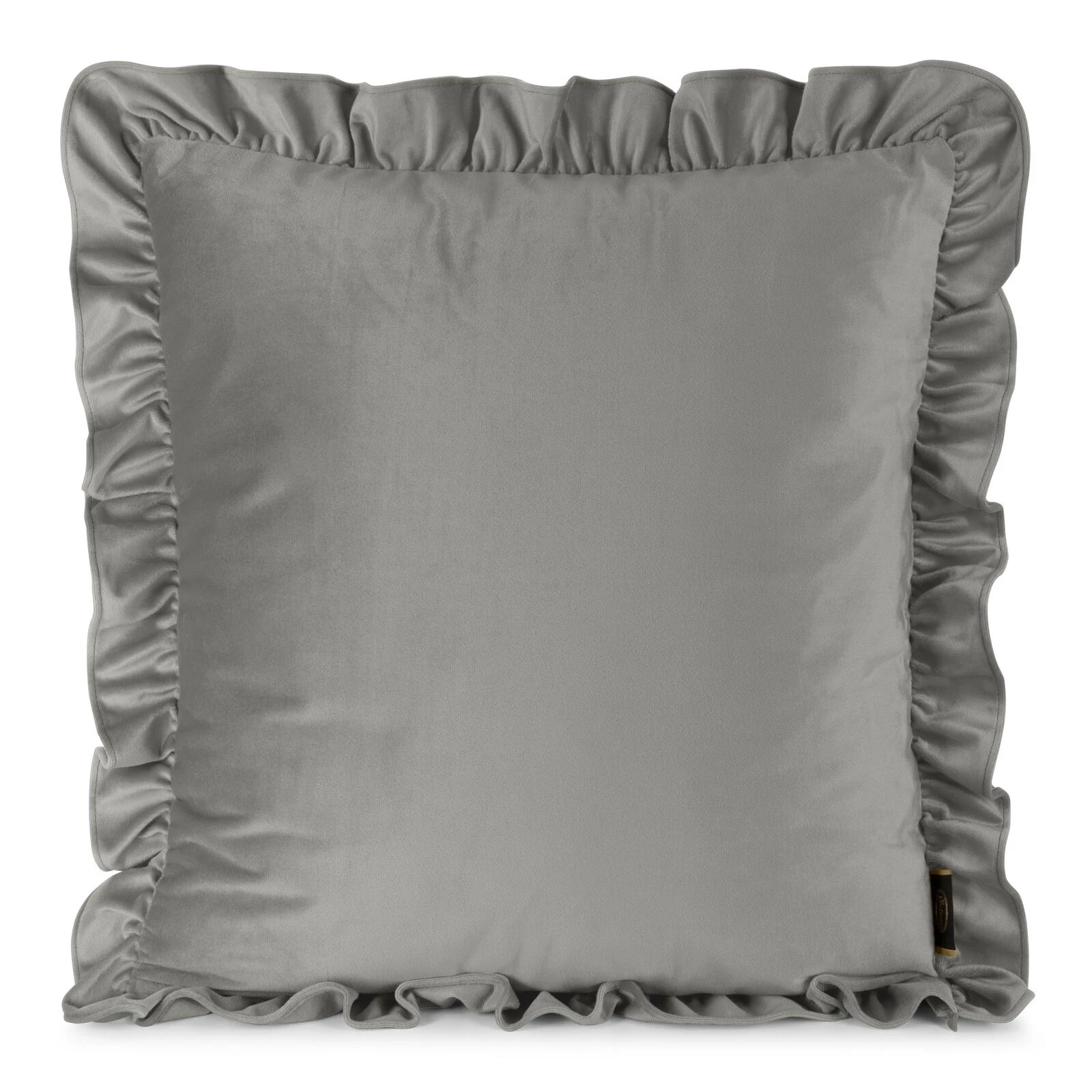 - Welwetowa poszewka z falbankami szerokość: 45 cm, długość: 45 cm, kolor: srebrny, Gramatura: 210 GSM, Skład: 100% poliester