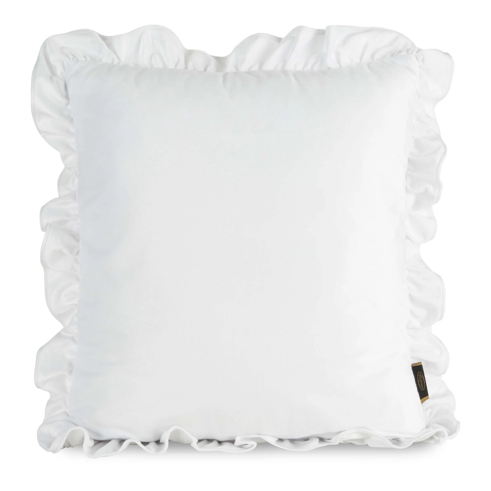Welwetowa poszewka z falbankami szerokość: 45 cm, długość: 45 cm, kolor: biały, Skład: 100% poliester