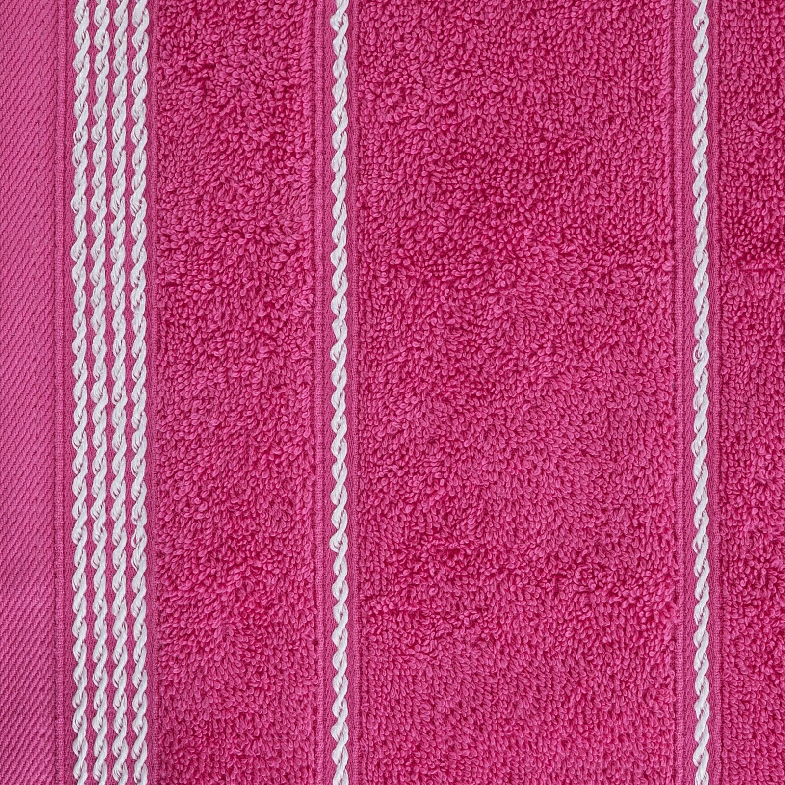 Miękki, klasyczny ręcznik kąpielowy z chłonnej tkaniny bawełnianej frotte zdobiony subtelną, elegancką bordiurą. Jednokolorowy ręcznik nie farbuje. szerokość: 30 cm, długość: 50 cm, kolor: amarantowy, Gramatura: 500 GSM, Skład: 100% bawełna; część ozdobna: 60% bawełna, 40% poliester