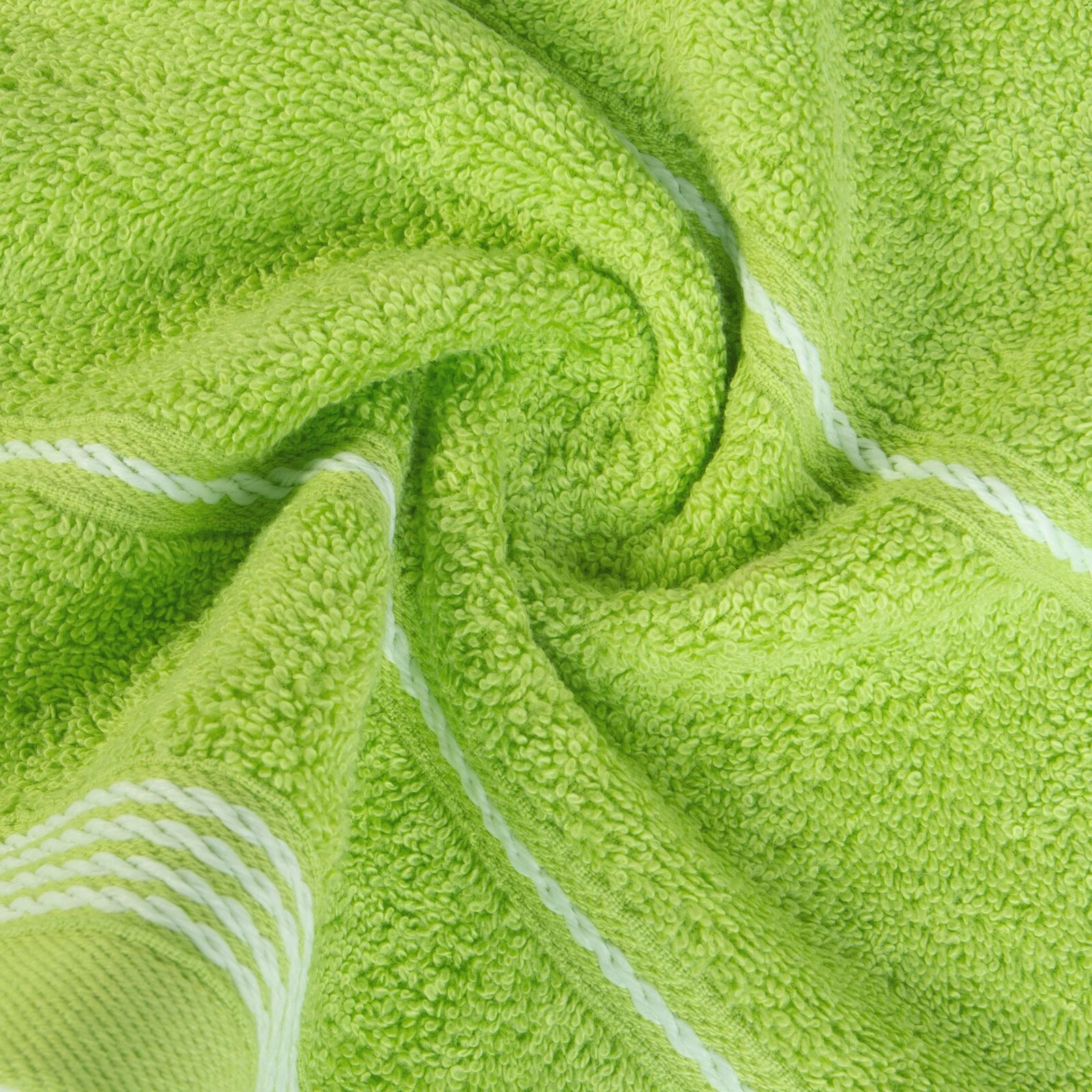 Miękki, klasyczny ręcznik kąpielowy z chłonnej tkaniny bawełnianej frotte zdobiony subtelną, elegancką bordiurą. Jednokolorowy ręcznik nie farbuje. szerokość: 30 cm, długość: 50 cm, kolor: jasnozielony, Gramatura: 500 GSM, Skład: 100% bawełna; część ozdobna: 60% bawełna, 40% poliester
