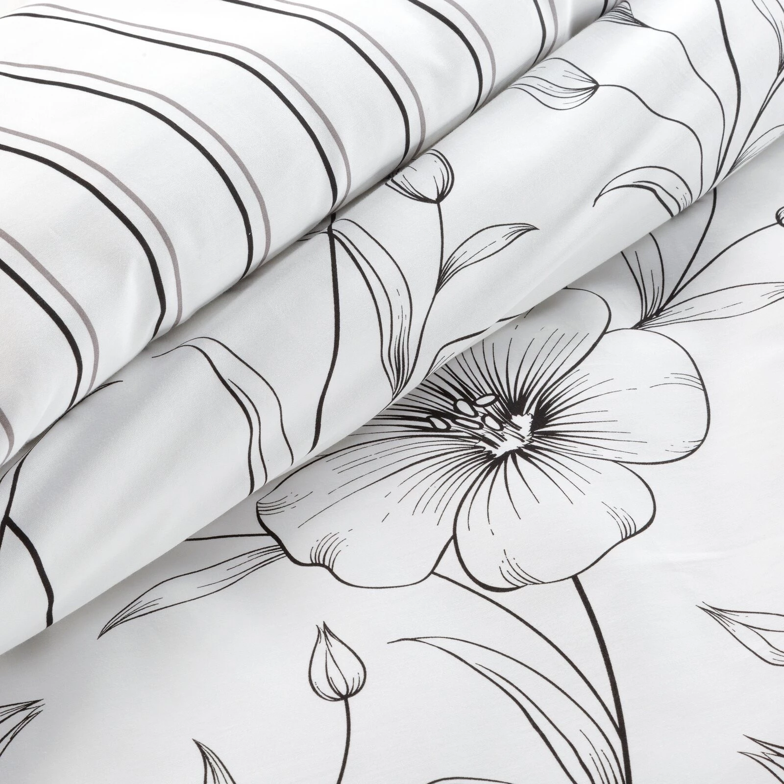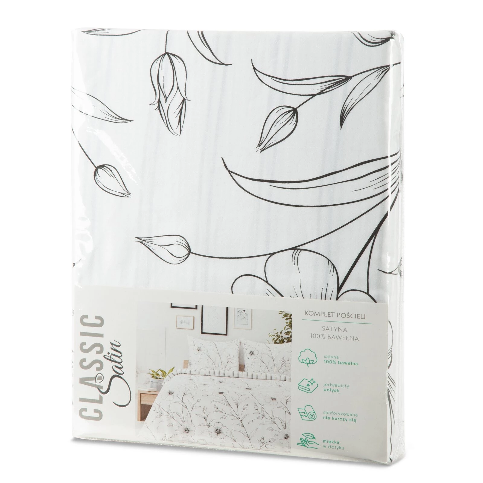 - Komplet pościeli z satyny bawełnianej z nadrukiem szerokość: 220 cm, długość: 200 cm, kolor: biały, Gramatura: 115 GSM, Skład: satyna, 100% bawełna