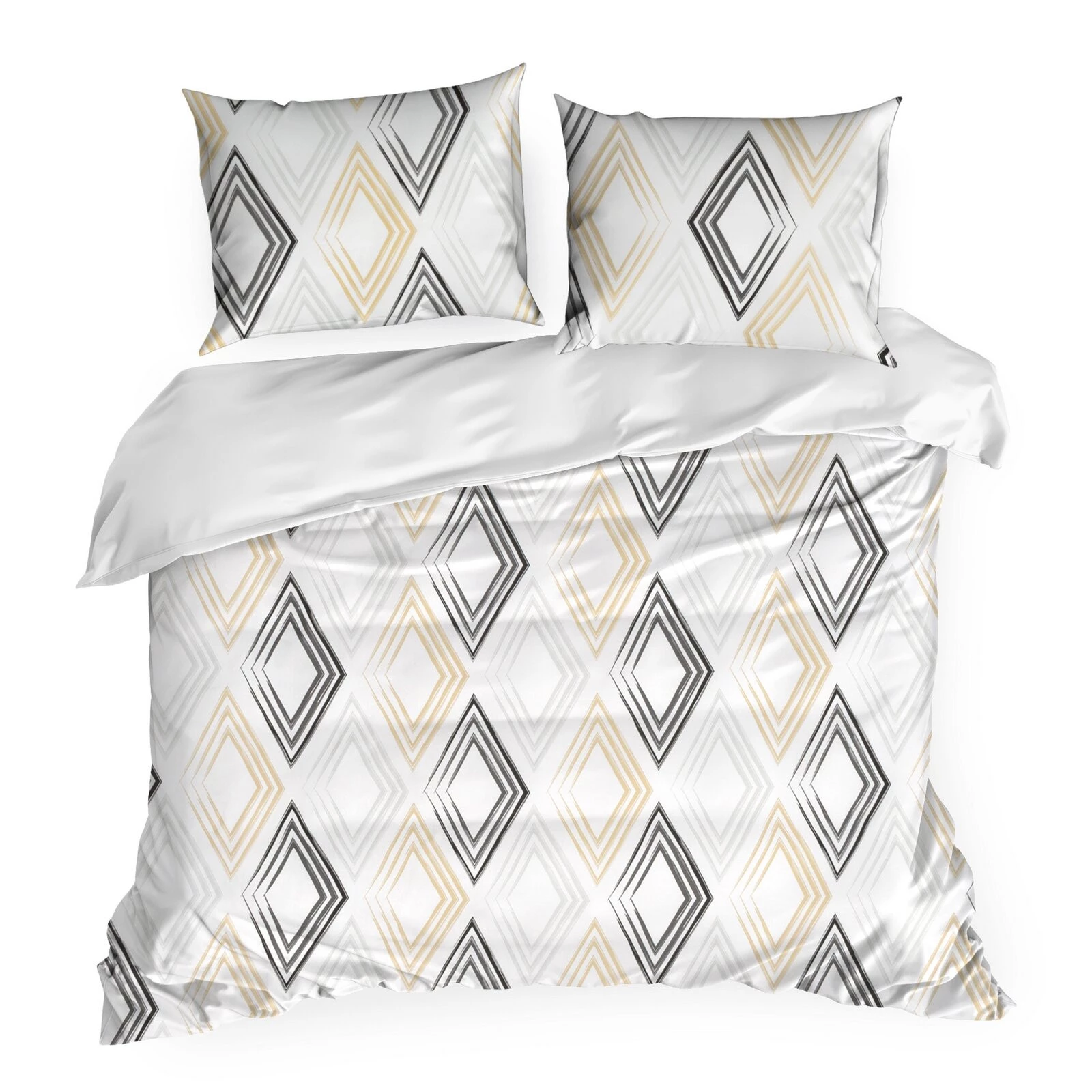 Komplet pościeli z satyny bawełnianej z nadrukiem szerokość: 220 cm, długość: 200 cm, kolor: biały, Gramatura: 115 GSM, Skład: satyna, 100% bawełna