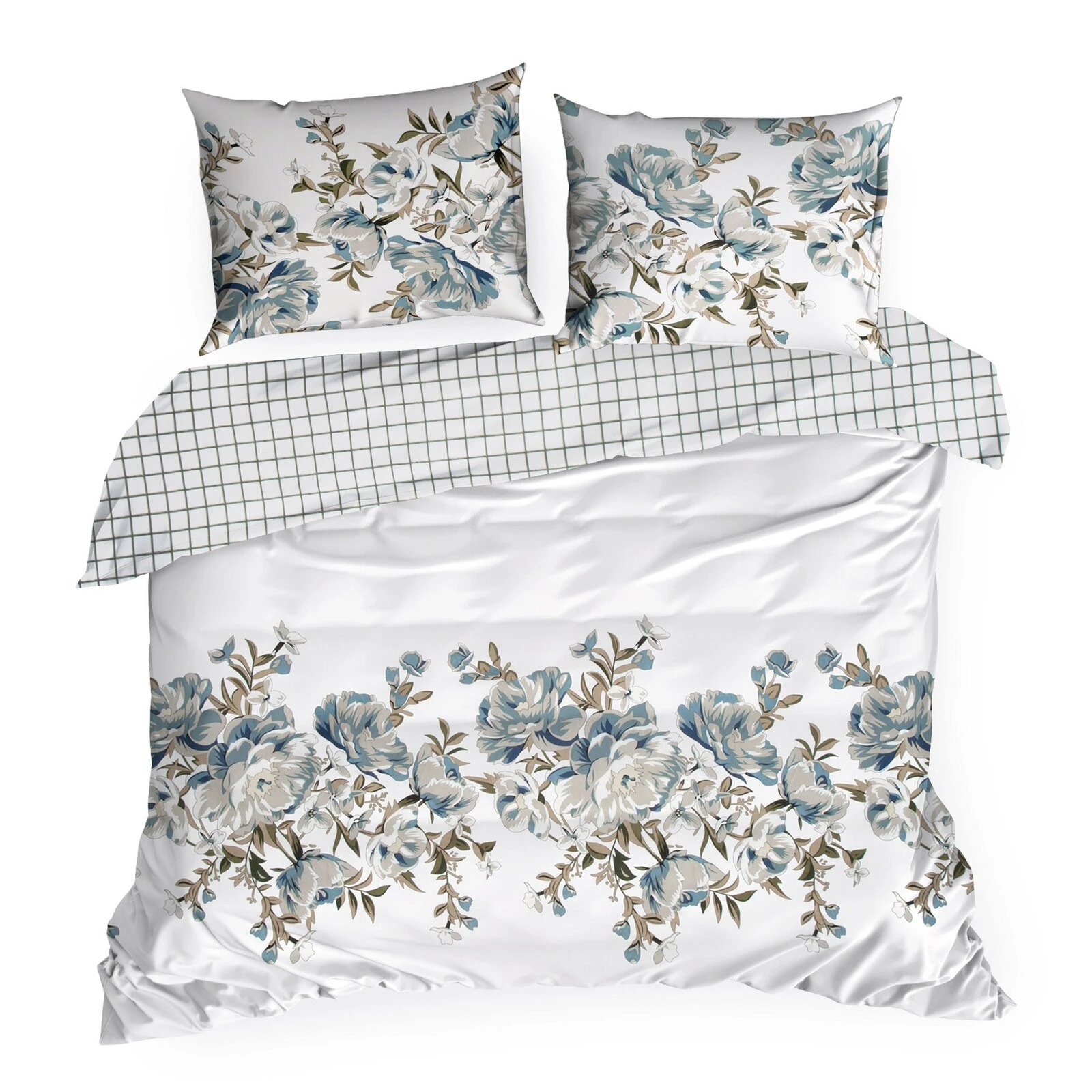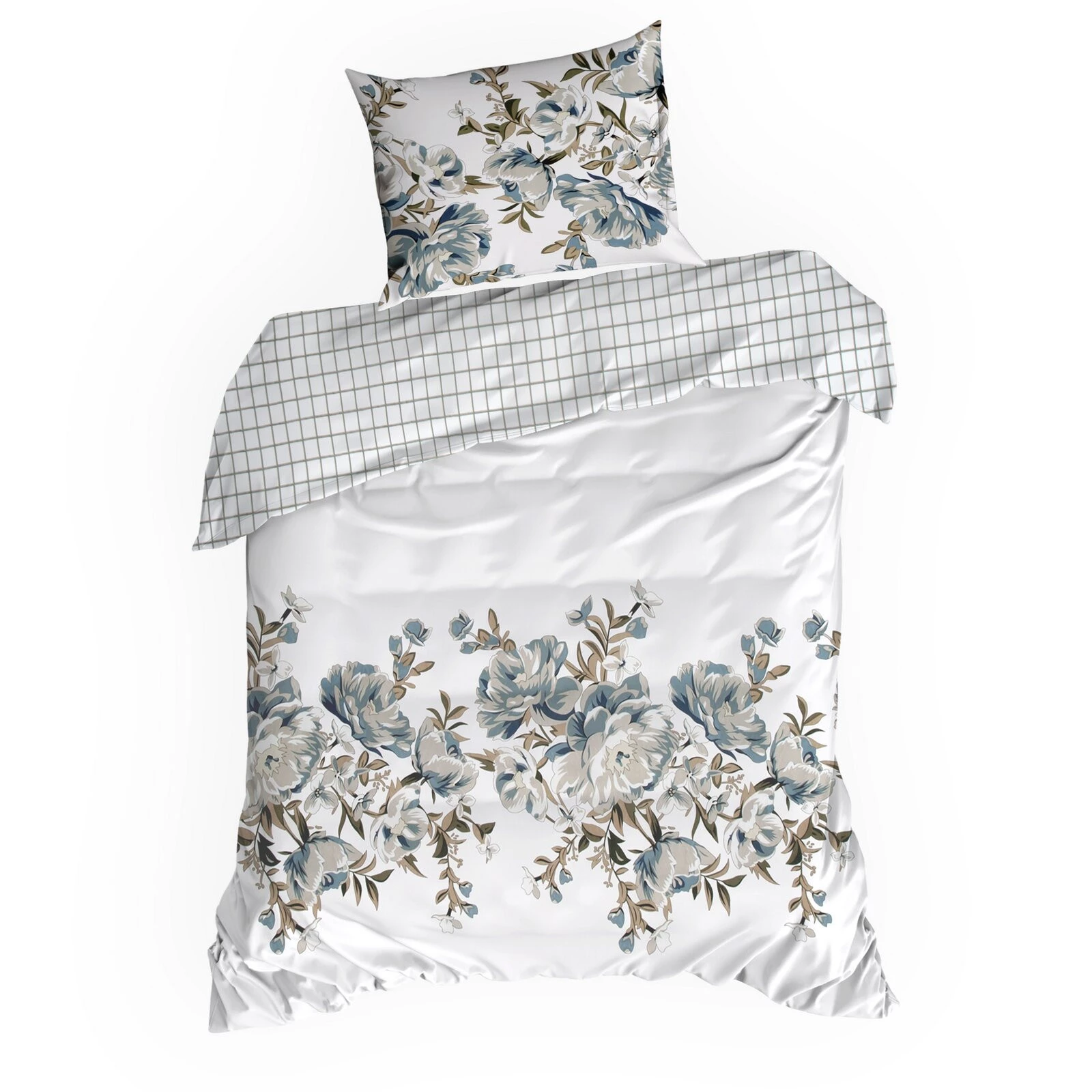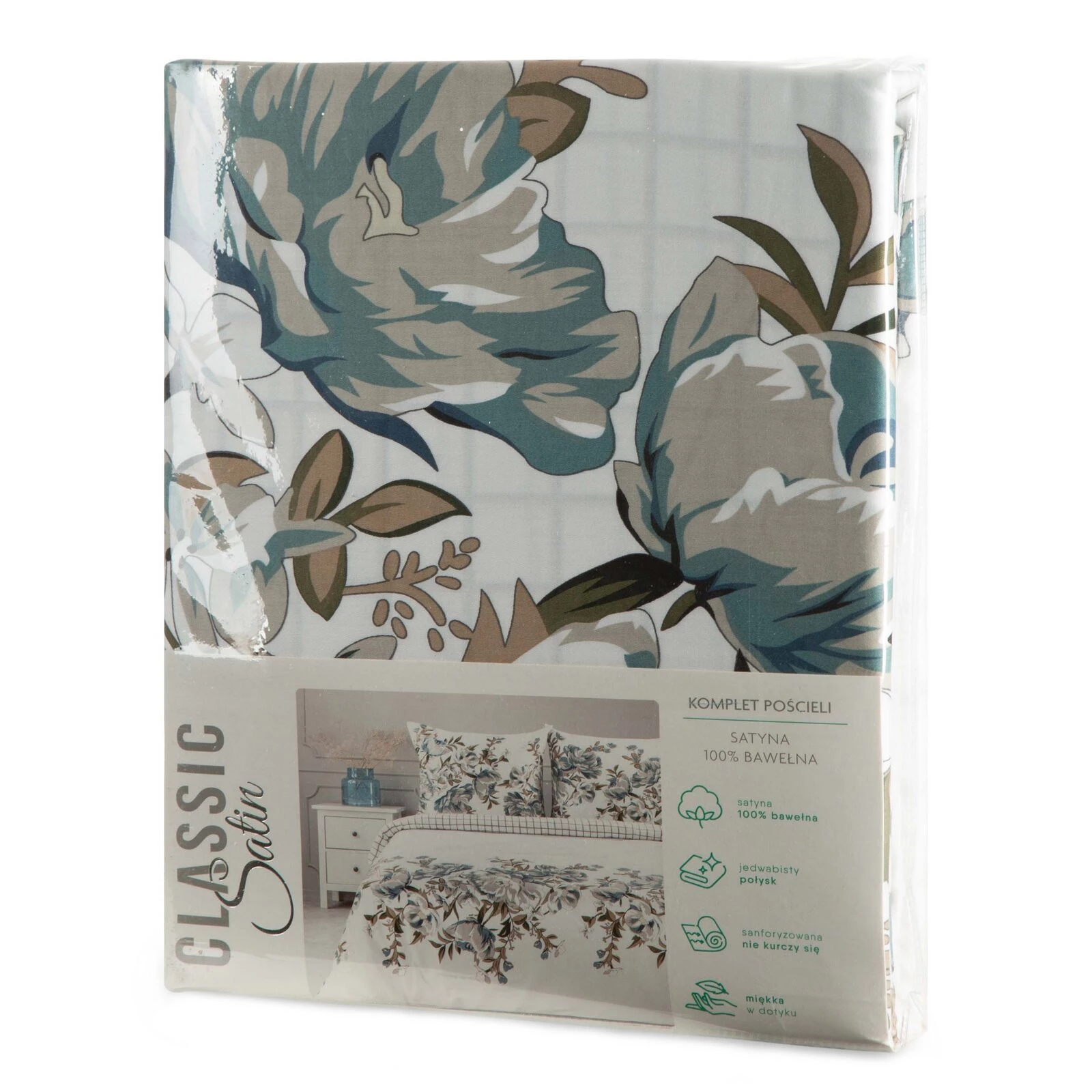 - Komplet pościeli z satyny bawełnianej z nadrukiem szerokość: 220 cm, długość: 200 cm, kolor: biały, Gramatura: 115 GSM, Skład: satyna, 100% bawełna