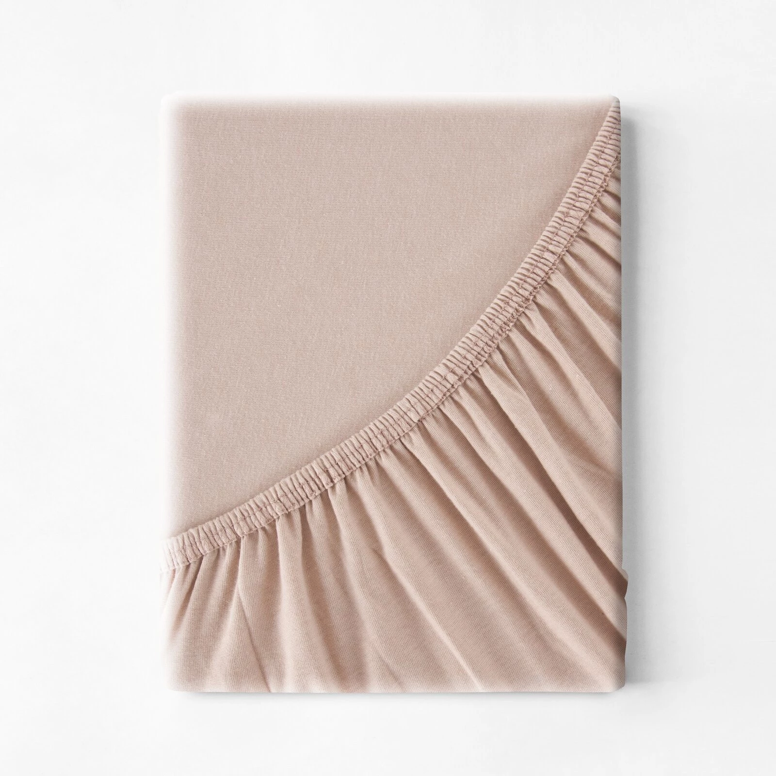 Bawełniane prześcieradło jerseyowe z gumką szerokość: 90 cm, długość: 200 cm, kolor: beżowy, Gramatura: 140 GSM, Skład: 100% bawełna
