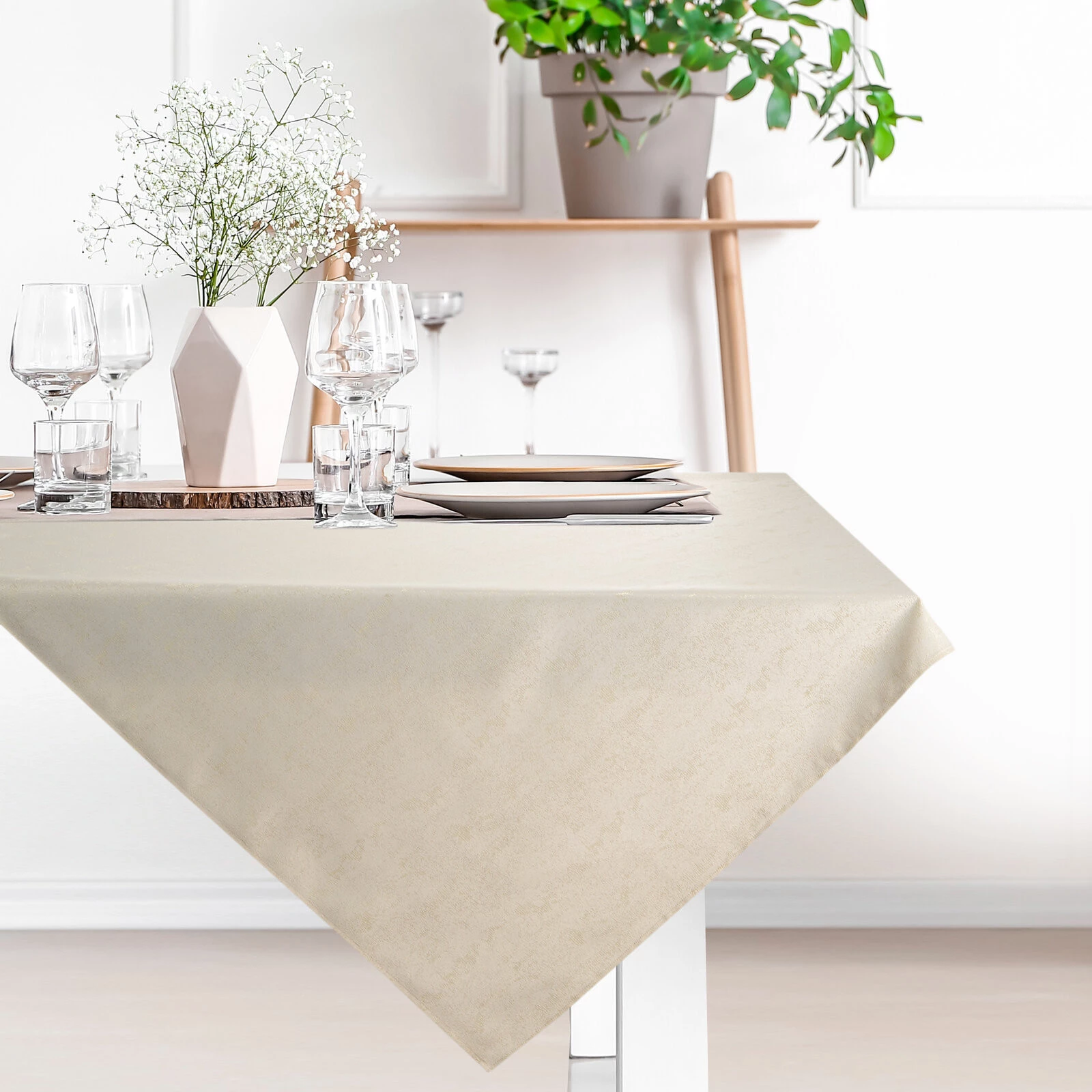 Kremowy obrus z delikatnym złotym połyskiem szerokość: 85 cm, długość: 85 cm, kolor: kremowy, Gramatura: 125 GSM, Skład: 94% poliester, 6% nić metaliczna