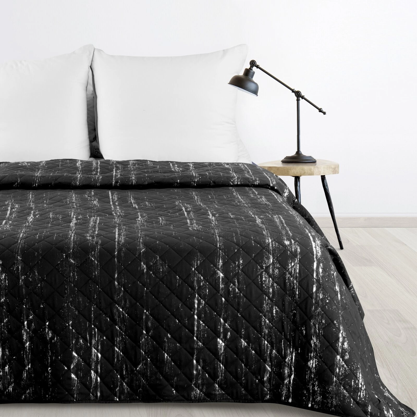 - Ozdobna narzuta z mikrofibry ze srebrnym nadrukiem szerokość: 220 cm, długość: 240 cm, kolor: czarny, Gramatura: 70 GSM, Skład: 100% poliester