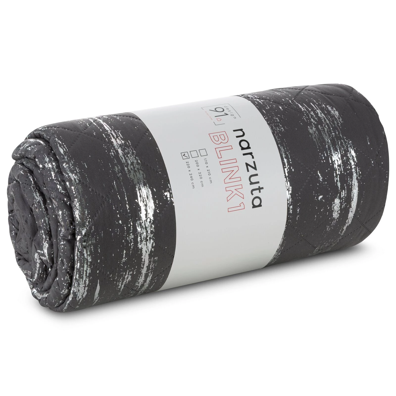 - Ozdobna narzuta z mikrofibry ze srebrnym nadrukiem szerokość: 220 cm, długość: 240 cm, kolor: grafitowy, Gramatura: 70 GSM, Skład: 100% poliester