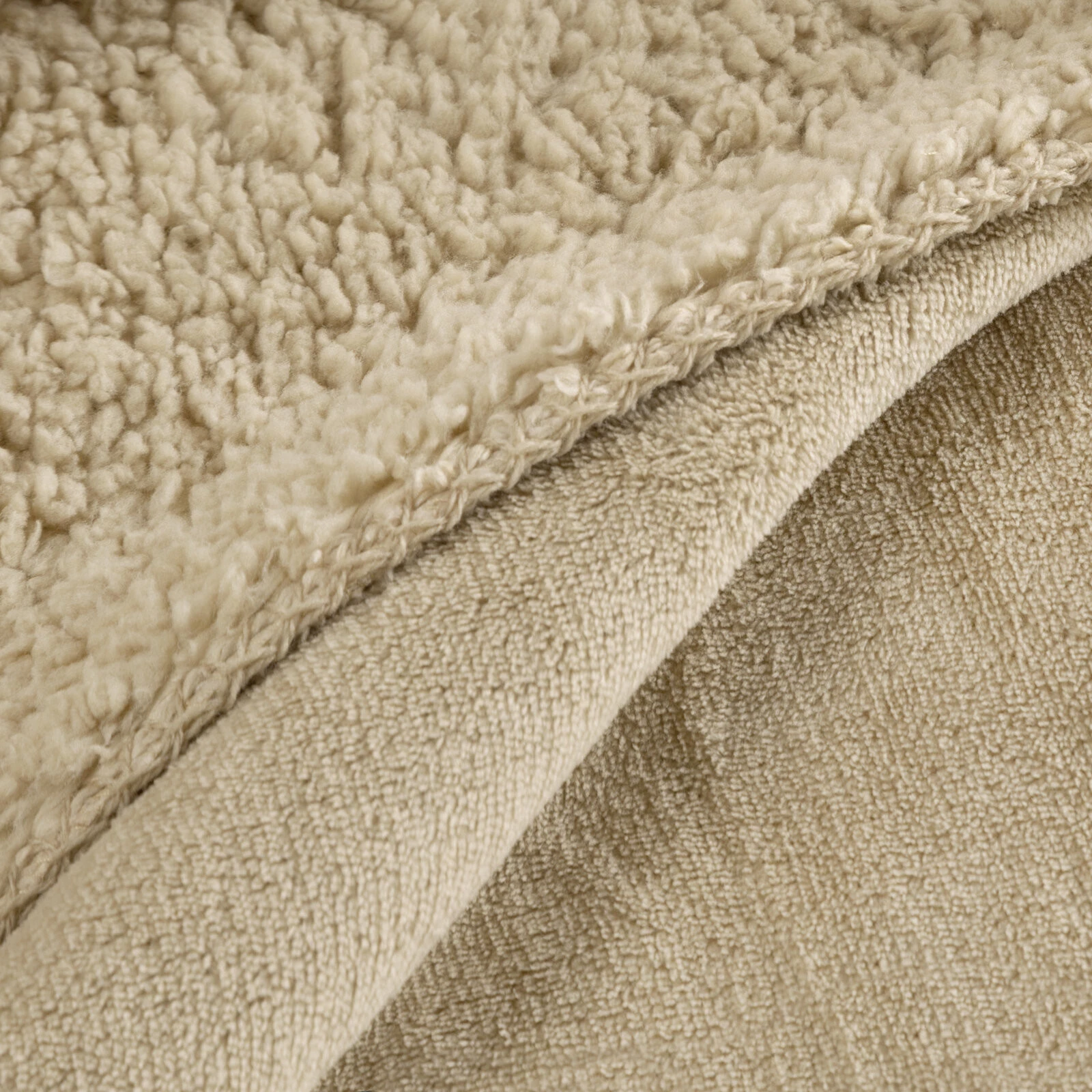 - Miękki w dotyku koc jednokolorowy imitujący buklę szerokość: 70 cm, długość: 160 cm, kolor: jasnobeżowy, Gramatura: 170+170 GSM, Skład: 100% poliester