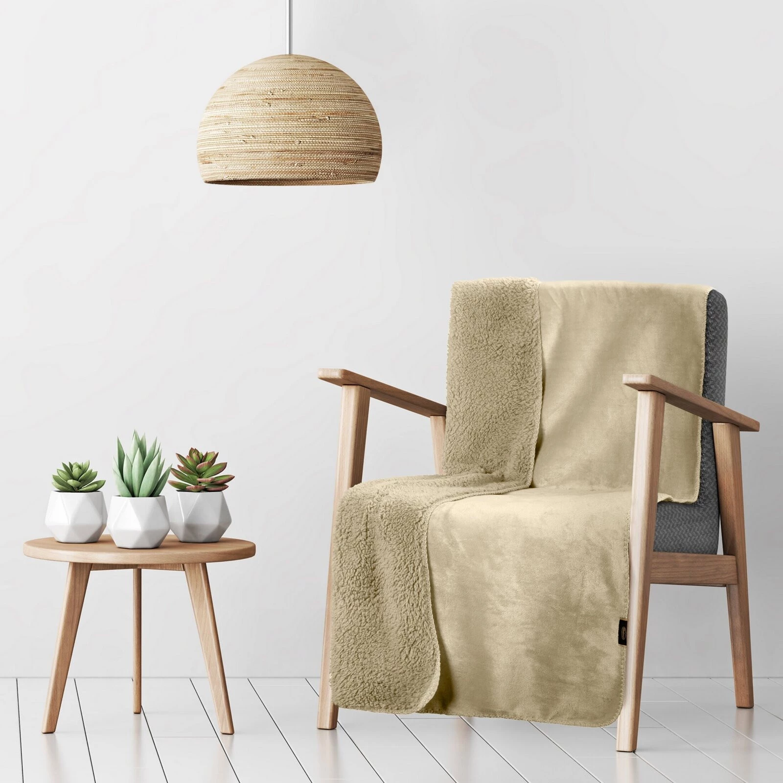 Miękki w dotyku koc jednokolorowy imitujący buklę szerokość: 70 cm, długość: 160 cm, kolor: jasnobeżowy, Gramatura: 170 GSM, Skład: 100% poliester